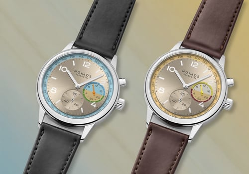 Just in time to start celebrating the most wonderful time of the year, Nomos Glashütte drops its third run of limited-edition Club Sport Worldtimer models. Both the Roam and Reverie feature champagne-colored dials, but the color accents differ: the Roam showcases sky-blue and green accents, while the Reverie has touches of yellow and red. Each model is limited to 175 numbered pieces.
