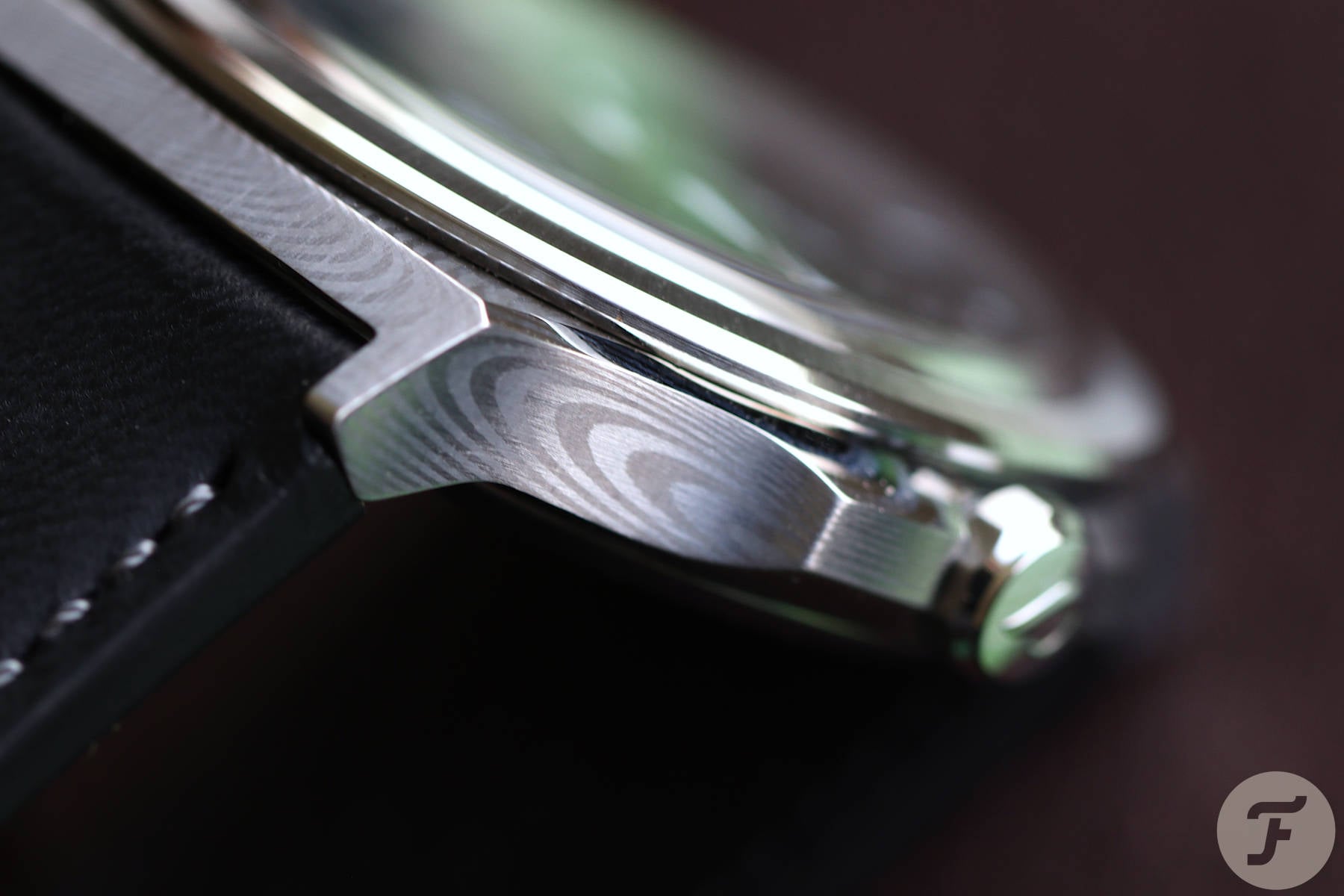 With the dial taking center stage, I was perhaps slightly skeptical when I heard that Lasse and Øystein were combining it with the Rastarkalv’s beautiful Damascus case. Would the dial’s prominence be somewhat diluted by competing with the swirling Damascus patterns? Thankfully, the moment I took it out of the case, that fear was allayed. The dial and case interact quite harmoniously. I almost feel that green is “the” dial color to go for here, as the swirling Damascus makes me think of tree rings, nicely playing into the forest-like visuals of the green Opphav dial. I’m somewhat smitten.