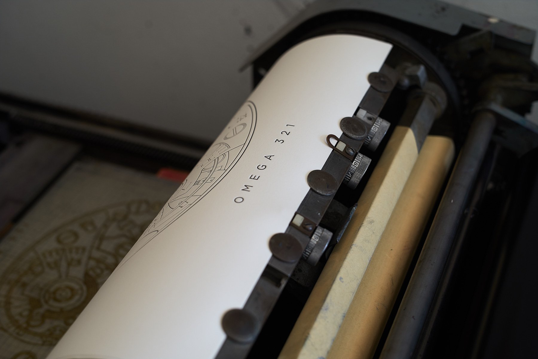We are also eagerly awaiting Omega to announce something with the caliber 321 movement in less precious metal, of course. But for those who can’t wait, Springs+Gears now offers a beautiful print of this caliber 321 in two sizes. And in two colors.