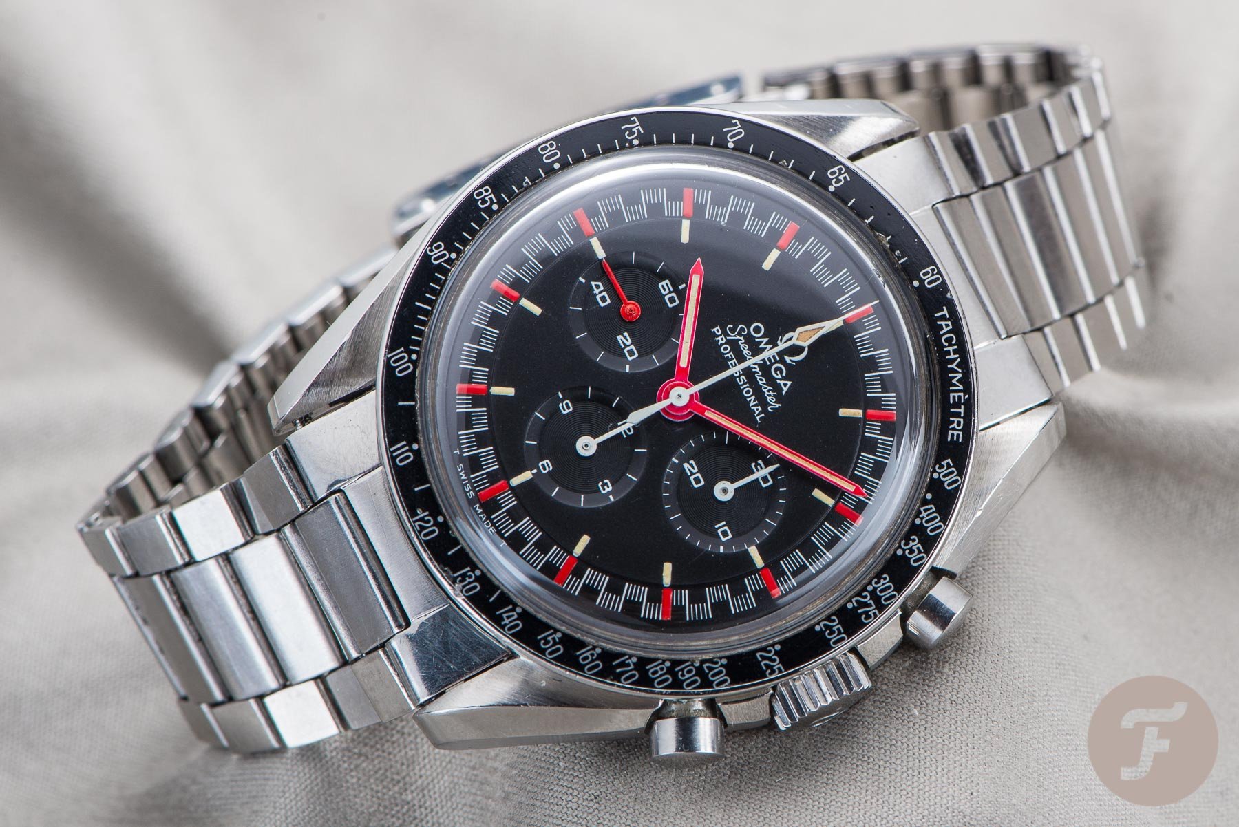 It is known that Belgian race car driver Willy Mairesse wore a Speedmaster around 1962. however, it is quite certain this wasn’t endorsed by Omega. Other race car drivers known to wear Speedmaster watches are Luca di Montezemolo and Walter Röhrl. The brand never properly pushed their relationship with motorsports, other than introducing the first Speedmaster (Professional) watches with a racing dial that were produced between 1968 and 1970, in different variations. It’s called a racing dial because of the colorful chapter ring, often featuring red, orange, and white elements. Often combined with orange or red hands.