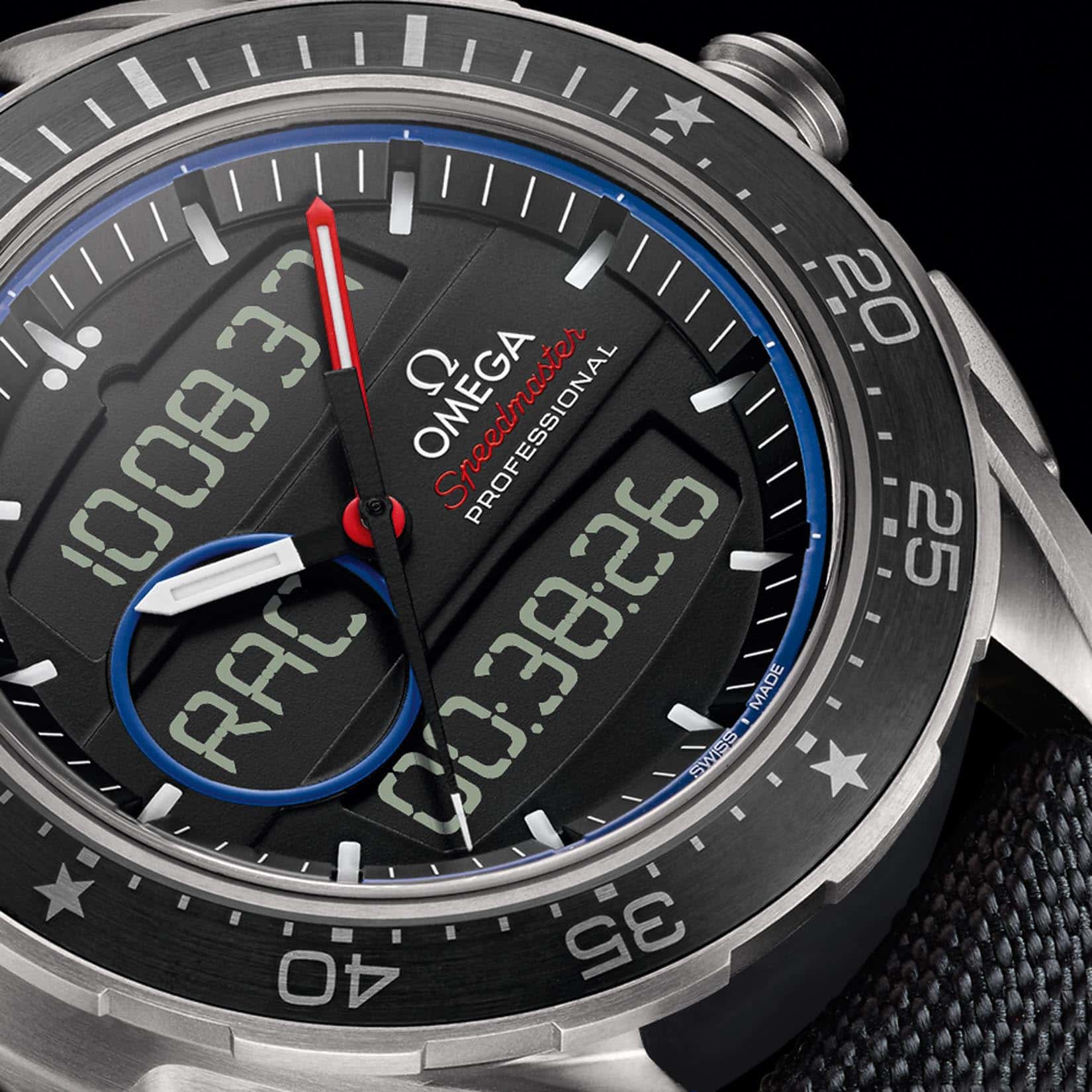 Th Speedmaster X-33 Regatta is worn on board by the crew, as it has a nifty regatta function. The ingenious regatta function keeps track of the critical 5-minute countdown to the start of the race. A series of alarms, each with their own alarm sounds and sequences, give the ETNZ crew a heads-up so they can prepare themselves. Once the race starts, the Speedmaster X-33 Regatta is used to measure the progress of the race. All digital functions are handled by Omega Caliber 5620.