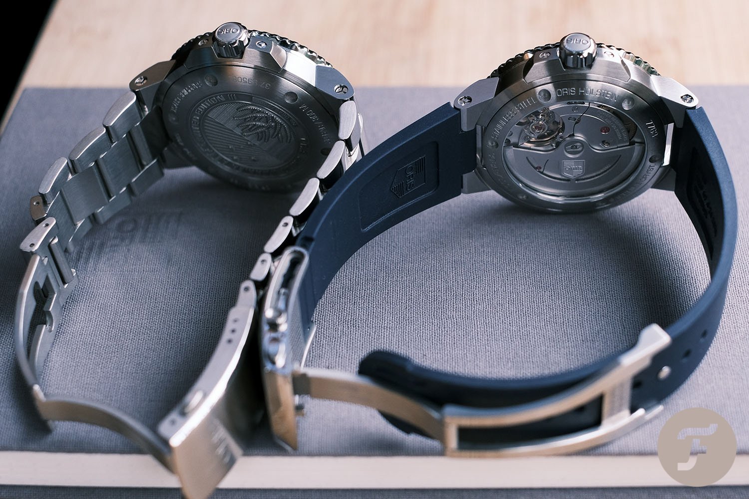 Oris went to great lengths to explain how the date window now had white numerals on a black date disc and that the window was slightly bigger. I am not too sure about either fact, as I have seen color-matching date windows in the Aquis before. And the window may be bigger but almost imperceptibly so. More importantly, in my view, is that the movement proportionally fills the case-back view. That allows the position of the date window to move towards the outer edge of the dial.