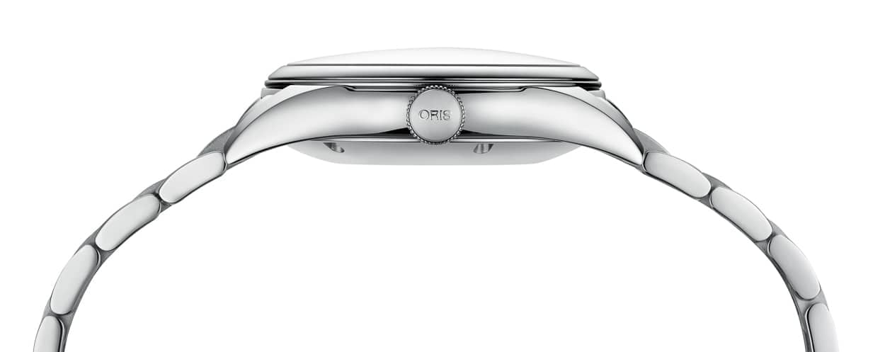 Starting at 1800 Swiss Francs for the version on a leather strap and 2000 Swiss Francs for the one with the stainless steel bracelet, this 33mm stainless steel watch competes with a number of other ladies watches out there. What’s especially nice, is that Oris made sure to fit a see-through case back, so those who appreciate a mechanical heart can actually have a look at it once in a while.