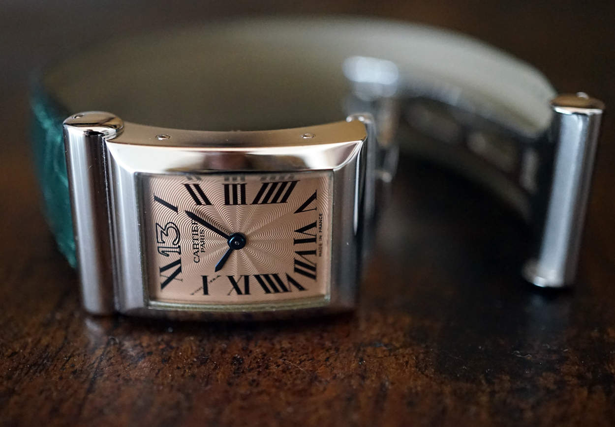 Also known as the Tank Oblique, the Tank Asymétrique was produced in different sizes and with different lug constructions. What they all have in common is that slightly turned dial, making it unnecessary to bend the forearm in order to read the time.