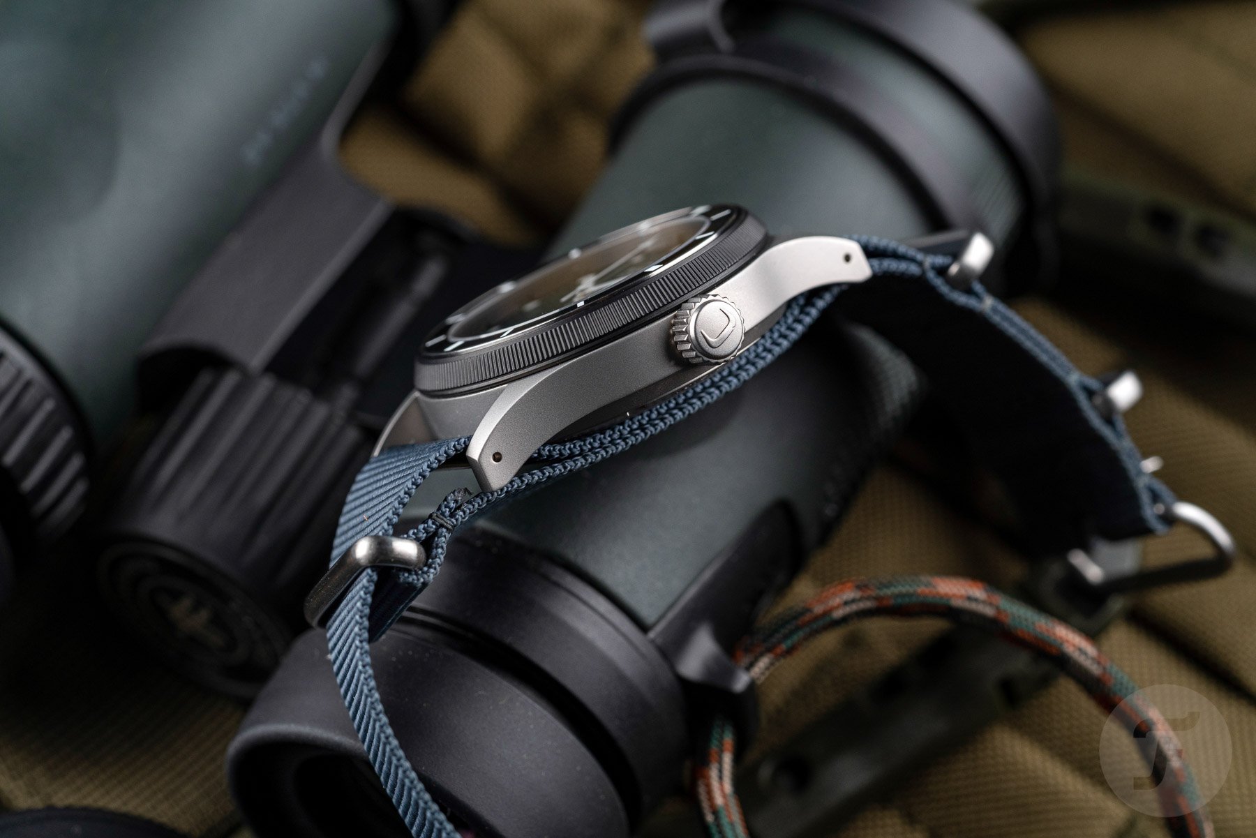 What’s a good dive watch without a great dive bezel? A bad bezel on an otherwise decent diver can be a total deal-breaker. But never fear, the Peren Nera has your back, and it delivers the goods. The black PVD-coated unidirectional bezel features conical knurling done by hand. The knurling flares out from the center and slopes down towards the outer edge. It’s grippy, and the 120 clicks are both satisfying and well-defined. The aluminum insert has a stripped-down look, with only hash markings defining the 5-minute intervals, a thicker marker every 15 minutes, and a lumed arrow mark at 12 o’clock.