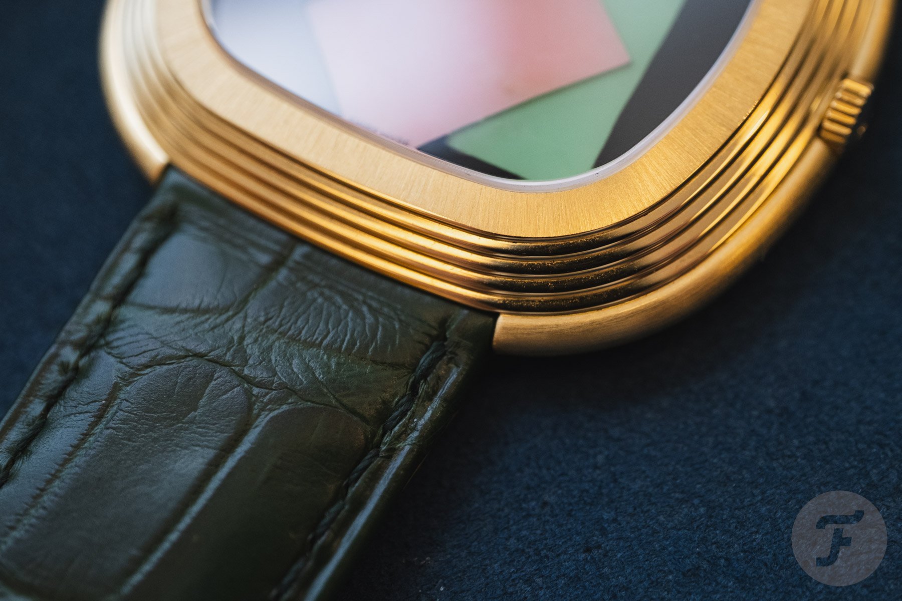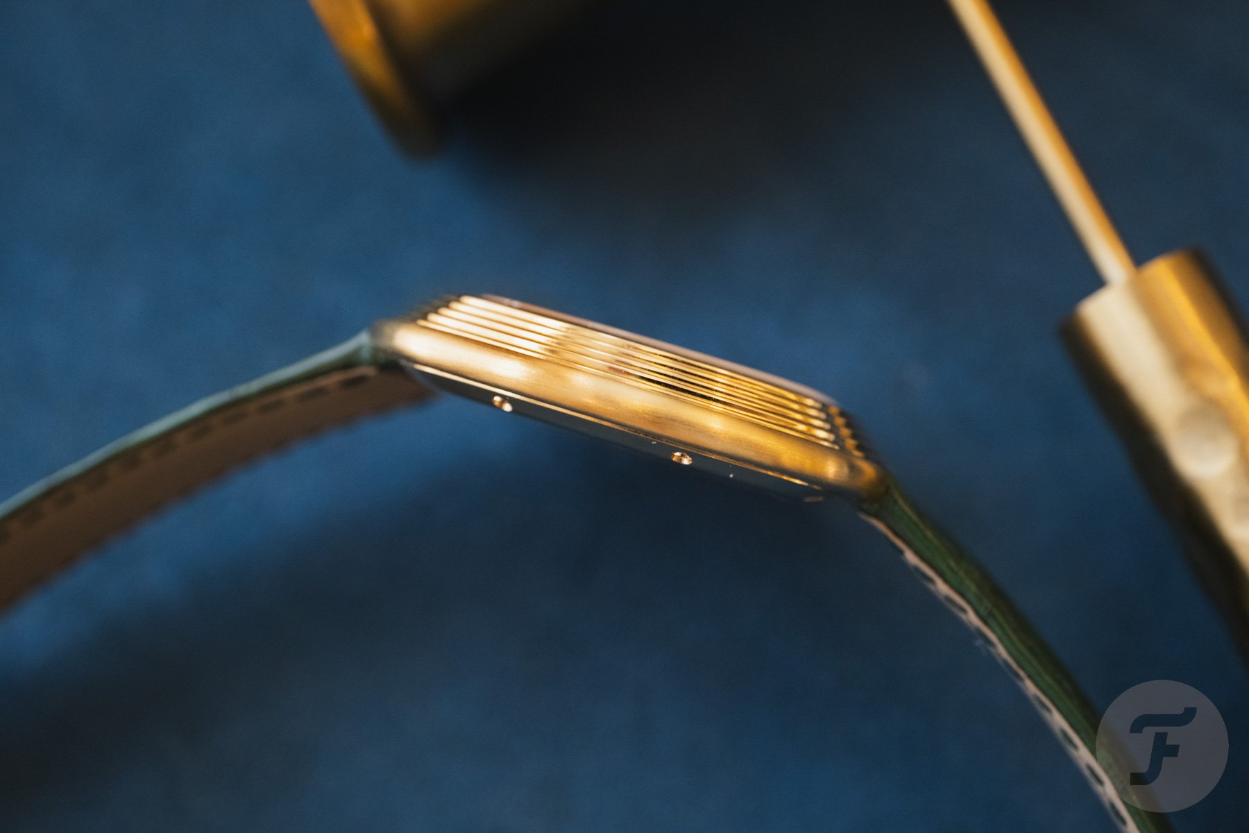 For those wondering how this watch wears, it’s not a small or ergonomic one built for comfort. This is not your “daily beater.” The cushion-shaped and stepped 18K yellow gold case has a 45mm diameter, a 43mm length, and an 8.08mm profile.