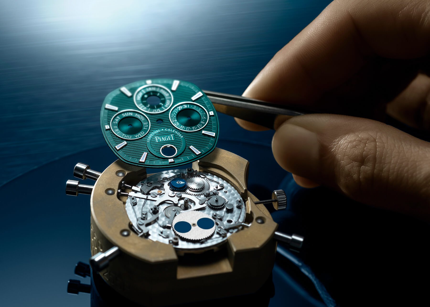 Equipping the 1255P with a complicated perpetual calendar is quite a technical feat. You could imagine performing that on a movement measuring a mere 4mm thin. And it really shows off Piaget’s fascinating legacy as a pioneer in the field of ultra-slim movements. The brand garnered many world firsts as far back as 1957 when it created the 9P, a 2mm-thin hand-wound mechanical movement. It was followed in 1960 by the micro-rotor caliber 12P, which, at 2.3mm, became the world’s thinnest automatic movement.