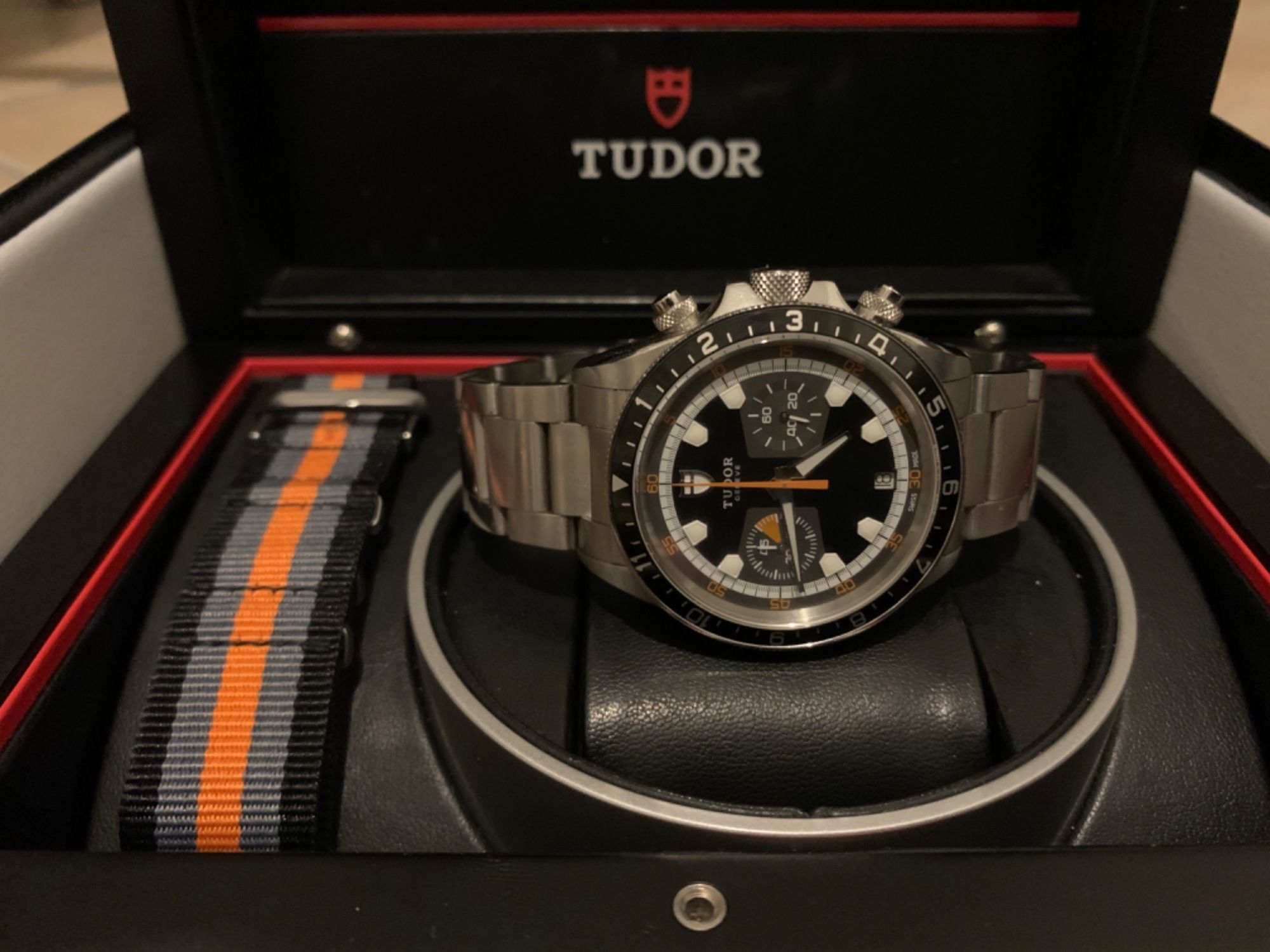 I remember when the Heritage Chronograph came out, and people were hyped. An incredible looking chronograph, inspired by the vintage Tudor Monte Carlo watches, for a sharp price. I was still very much in Rolex circles at the time, and I noticed many of my Rolex friends jumped on the Tudor bandwagon. The watches have a similar heritage, similar looks, but for a far more accessible price tag. Some came back and told me it doesn’t do the same for them as a Rolex, others enjoyed their chronographs (and still do) and purchased the Black Bay(s) as well. The Heritage Chrono is one of my favorite Tudor watches, and I’ve often considered one. For a pre-owned price of €2,350 for a complete package (from 2017), it is almost silly not to buy one. Click here for the offer on this Tudor Heritage Chrono.