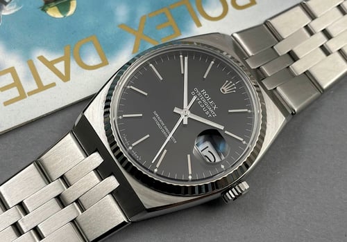 Now, what if you love the Oysterquartz’s brutal design but simply don’t want batteries in your watches? Well, you can chase the illusive Date ref. 1530. This looks every bit like an Oysterquartz, but inside it ticks the trusty old automatic caliber 1570.