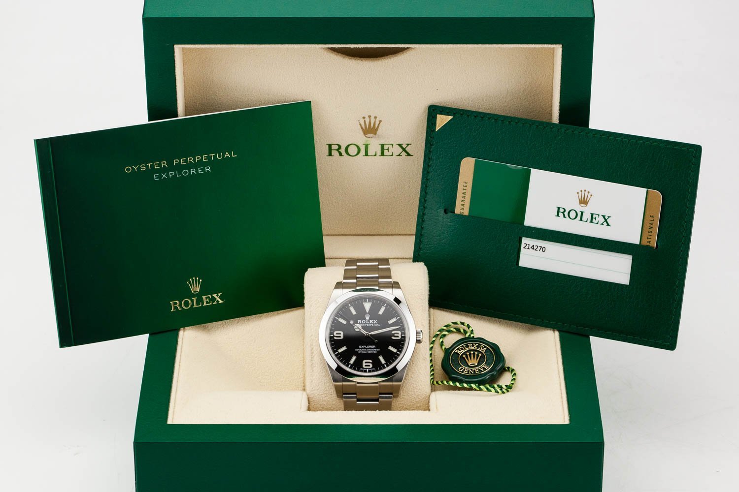 My preference would be the latter. Here’s one from 2016 with its box and papers for US$9,450 (approximately €8,795). While that’s over retail, this is the discontinued 39mm version, and it’s in very good condition. There’s also the debate of paying more than retail for the new Explorer 40 or starting a waiting game with no clear end date in sight.