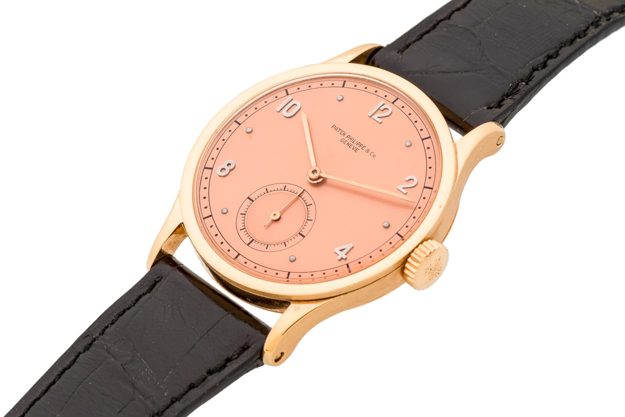 A Patek Philippe Calatrava is a round dress watch that has been a quintessential part of the brand identity since the 1930’s. The term Calatrava has even been widened to describe other round dress watches as a general term. In 1932, Patek released the reference 96 dress watch, the first Calatrava. The Bauhaus influence was directly visible in its ultra-simplified forms, prevailing rationality being tied to functionality as well as the underlying guiding principle that industrial production could still showcase a distinctive artistic spirit. As far as Calatravas go, my favorite remains the reference 570, which was released in 1938 with a larger diameter of 35.5mm versus the 31mm of the 96. The design and spirit are the same, however I find a 35.5mm more wearable today as a dress watch versus a 31mm. I rarely wear a gold watch, but I prefer pink gold over yellow gold due to its warmer hue. Finally, when looking at this example, the bold pink dial on this 570 could, when hearing the idea, sound strange. However, when you see it in person there is a harmony of colors and contrast that just makes you go wow! (or me at least)
