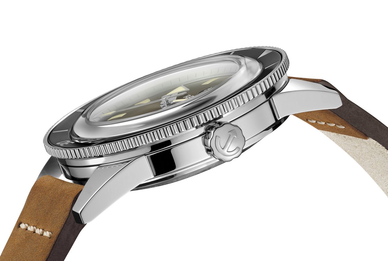 Unlike the prior model, though, this one will come with a leather carrying case, strap changing tool, mesh bracelet, and NATO-style strap. Inside, the 25-jewel automatic ETA C07.611 sees duty and has a date function. 1,962 pieces will be available just like the original and the retail price will be $2,100.