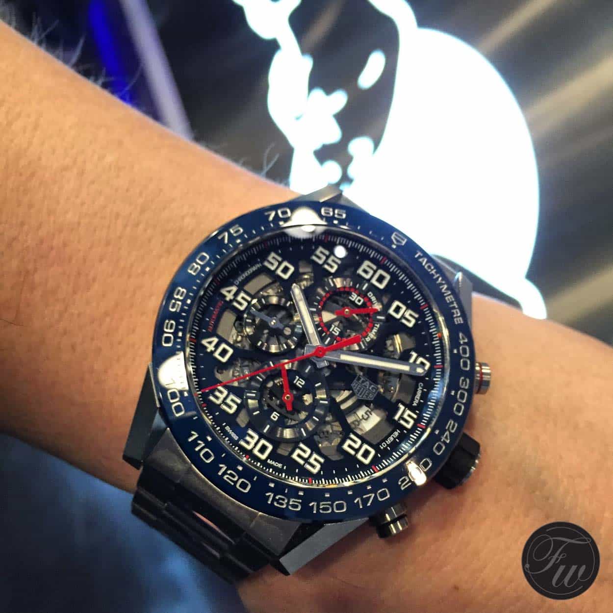 - Polished rhodium-plated “TAG Heuer” logo at 3 o’clock
