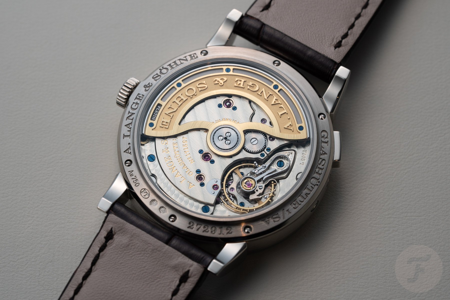 Imagine you advance an annual or perpetual calendar by a day or even a week; that’s not a big hassle. But when you advance it by months or even years by accident, it will be an expensive mistake. As you can’t reverse the calendar, you either have to wait for a very long time or send it back to Glashütte for a costly correction. As Lange’s watchmakers understand, you like pushing buttons during boring meetings, so you have to pull the crown into a specific position before pushing the button actually does something. So you can just go ahead and click away, as long as the crown is not pulled out.