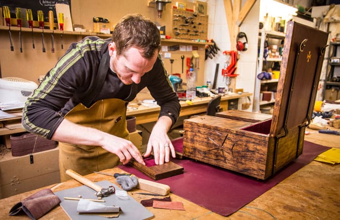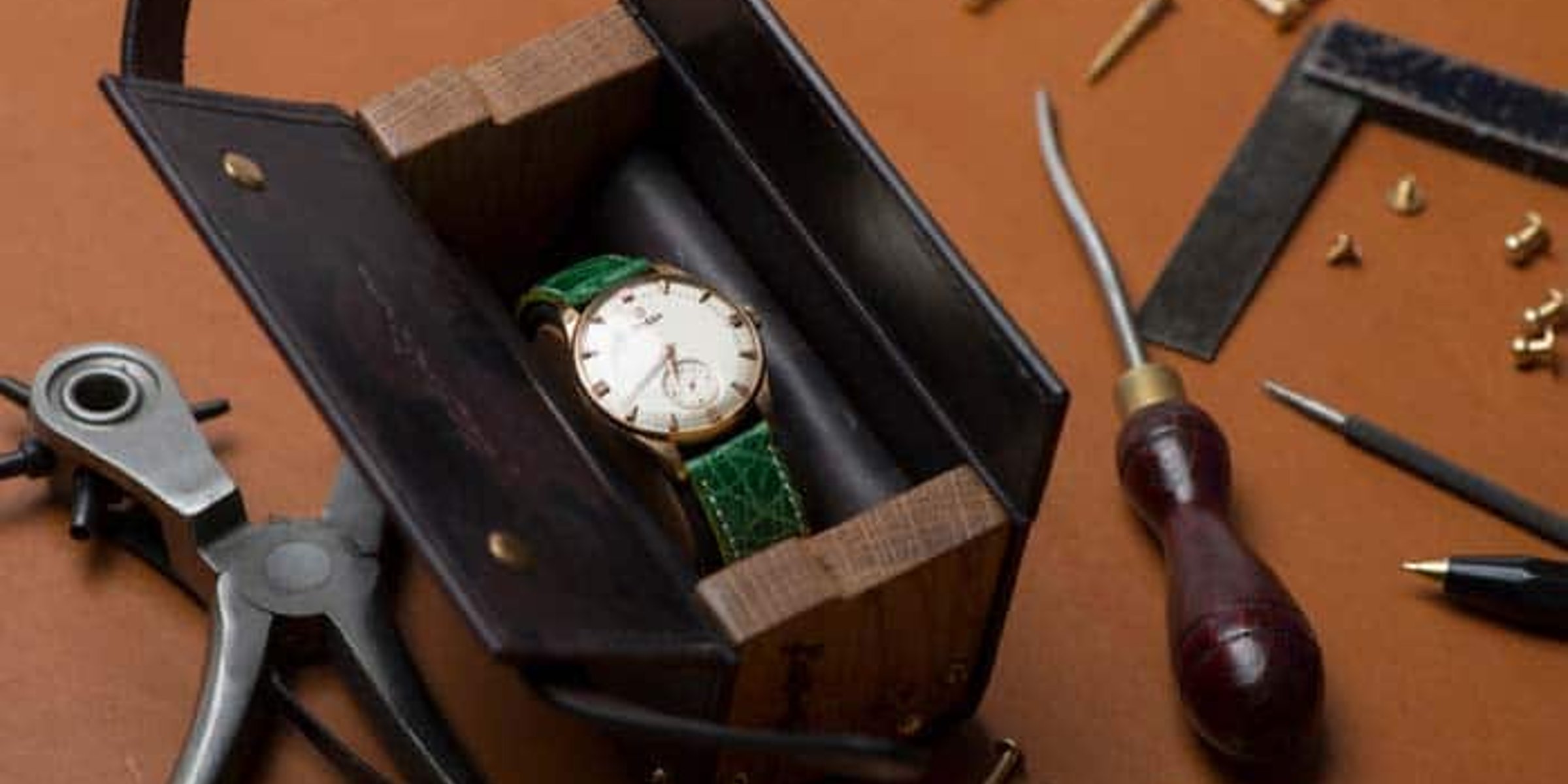 It took Robinson over 300 hours to produce the original Vacheron Constantin box (click for pictures and info). However it is the internal hidden leather and hardwood compartment that will continue to a wider audience in the form of the Campaign Watch Case.