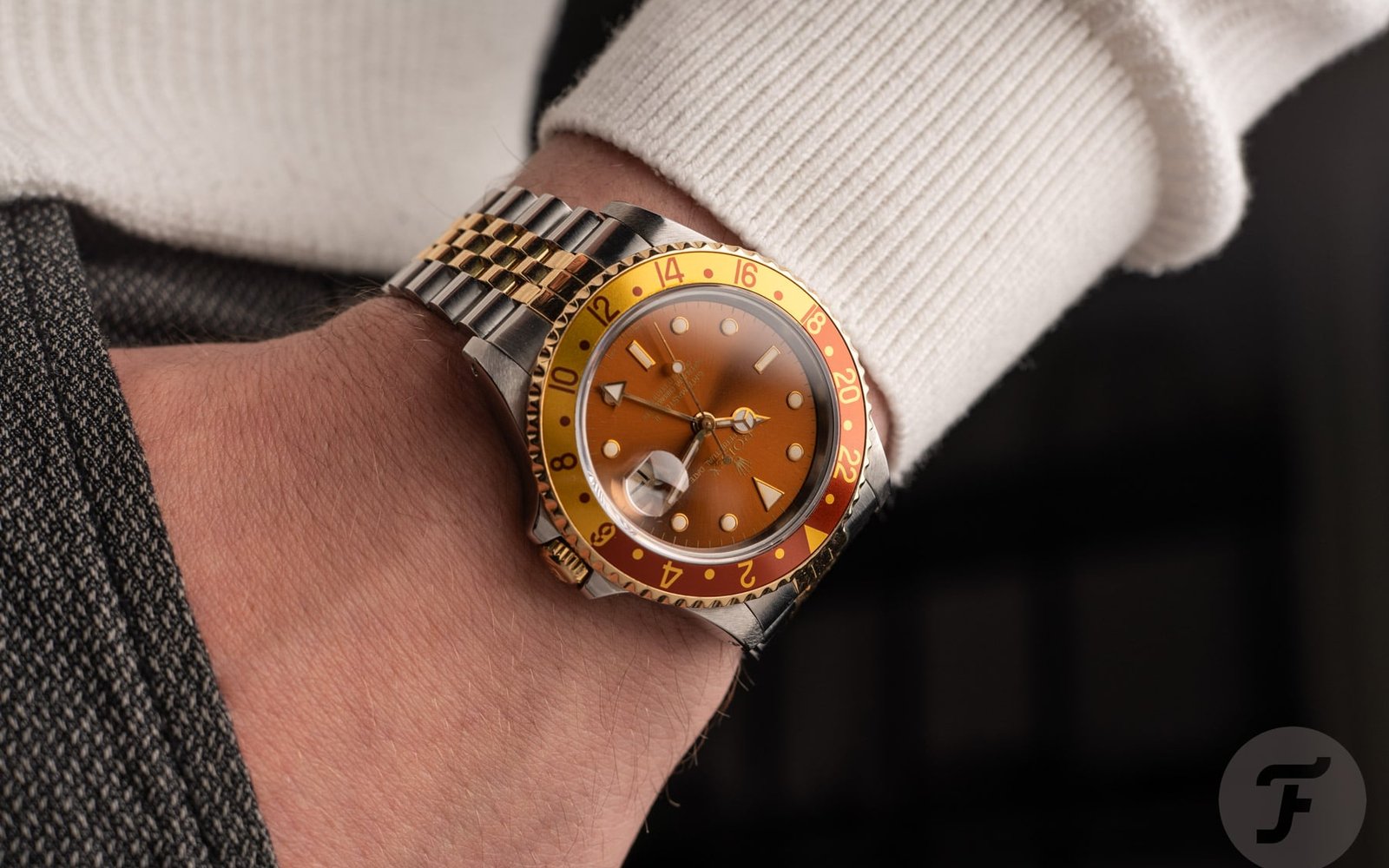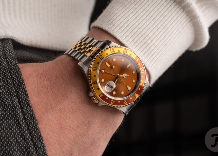The two-tone Rolex 16713 “Root Beer” has long been my favorite GMT-Master. While the all-stainless 16710 “Pepsi” is a beautiful and more practical choice for everyday wear, I’m at the point in my watch journey where I don’t much care if a watch fits my everyday life or not. At this point, I’ve covered the bases for a reliable “daily driver” with my beloved Submariner 114060. All I desire going forward are watches that make my heart race. All I “need” for the collection are pieces that give me the thrill I experienced in the early days of “watch life” when everything was new, exciting, and packed with emotion. The 16713 pre-ceramic Root Beer is that kind of watch. With its fiery brown sunburst dial, glimmering metallic brown and gold bezel, and flashy two-tone bracelet, it packs a punch that could crumple the mighty Chuck Norris himself.