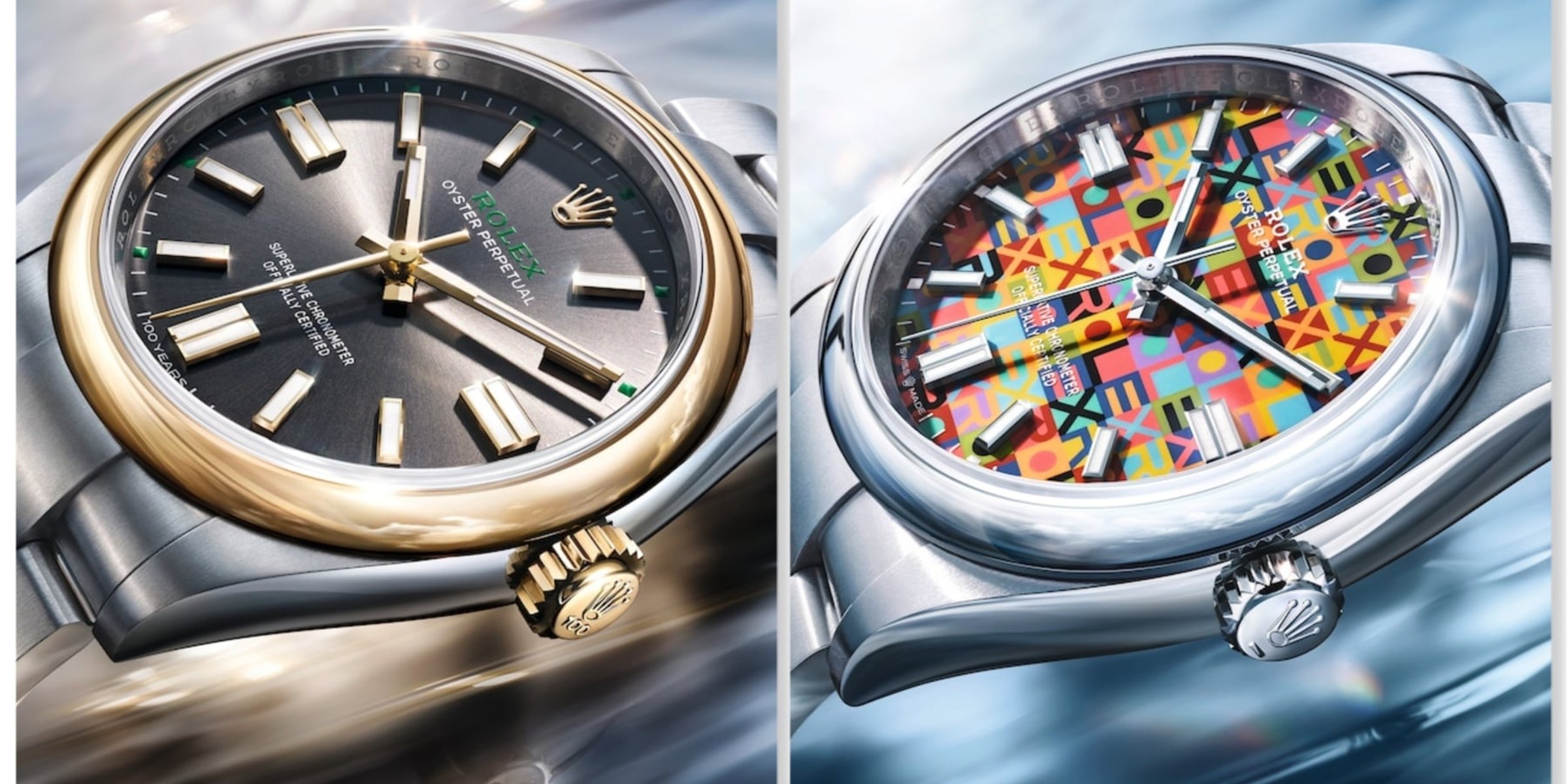 In 1926, Rolex introduced the first waterproof and dustproof wristwatch, marking a major step forward. Given the name “Oyster,” this watch featured a hermetically sealed case that provided optimal protection for the movement. Five years later, Rolex invented and patented a breakthrough self-winding mechanism with a Perpetual rotor. With 2026 marking the 100th birthday of the Oyster, The Crown decided to celebrate, not with a revamped interpretation of the original watch but by introducing a couple of celebratory Oyster Perpetual models. Among them are the Rolex Oyster Perpetual 41 and 36 in yellow Rolesor and a steel OP 36 with a colorful Jubilee-motif dial.