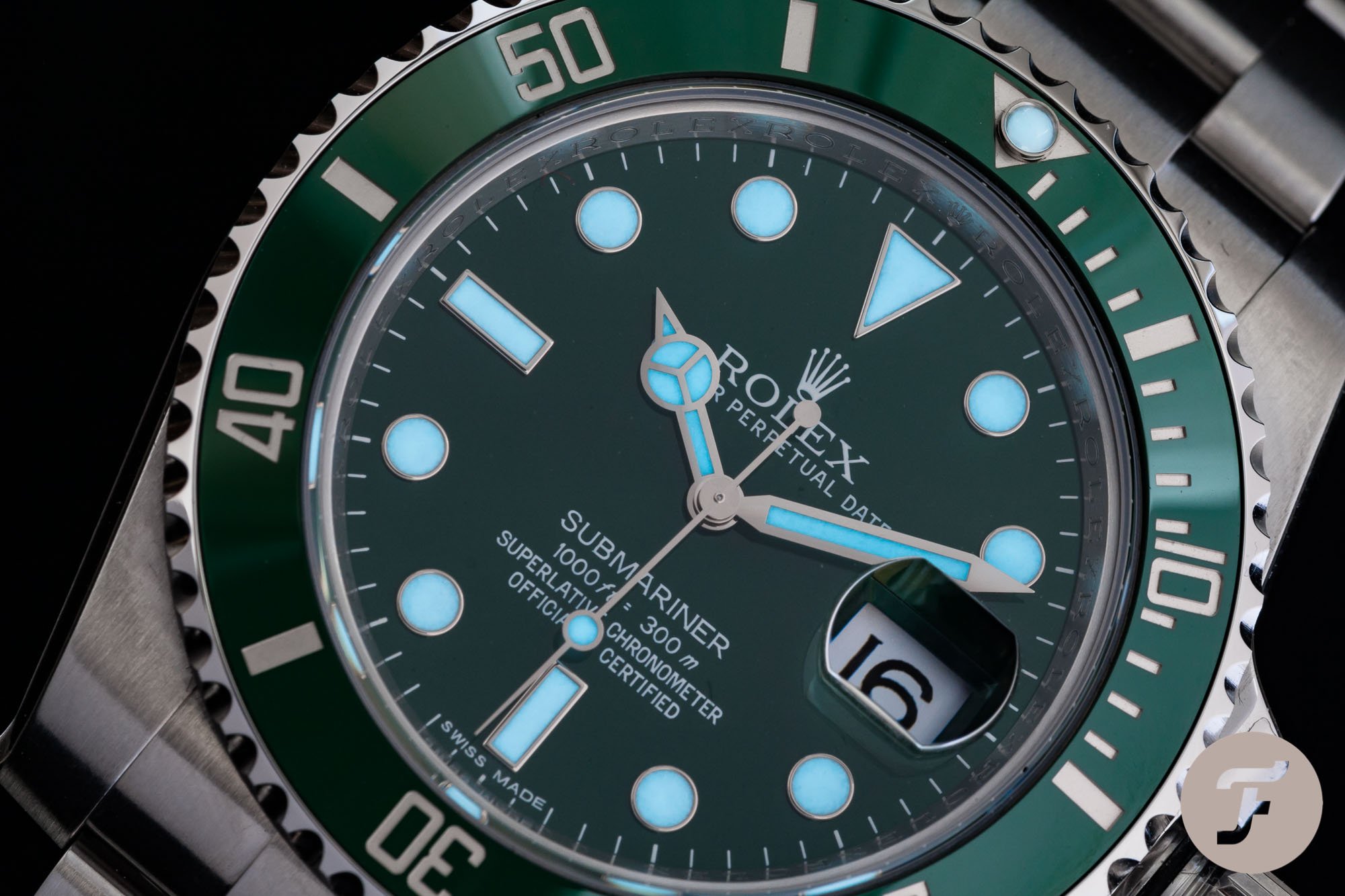 To make things more or less comparable when choosing between a Rolex Submariner or GMT Master II, we’ll stick with the Date version of the Sub as it aligns most closely with the date-containing GMT. And we’re going to simplify with stainless steel models because that’s what 100% of people have asked me about… Starting with the stainless Submariner Date, things have changed since the early 1990’s. Actually, it was in 2010 at Baselworld that Rolex showed up with two(!) stainless Sub Dates in tow. One was in typical black with a black bezel (ref. 116610LN) while the other shocked by trading in its dark bits for a fairly vibrant green (ref. 116610LV).