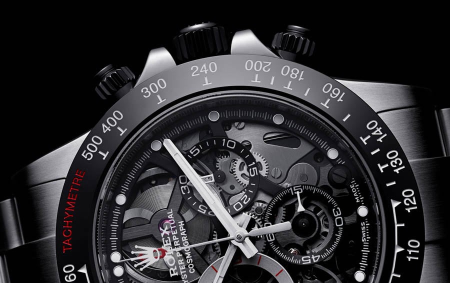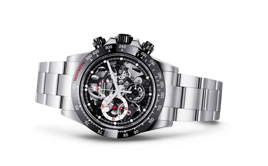 Movement: Rolex 4130 skeleton movement, bezeled by hand, with 21ct gold rotor