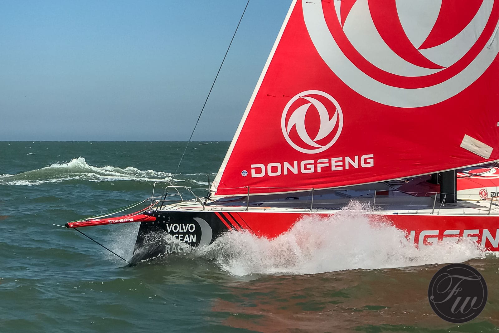 After just a few minutes, it was ON. I’ve never witnessed such a speed before on the water with a sailing boat, and it wasn’t even doing that fast according to the crew. When hanging with your feet over one side of the ship to compensate for the weight, you can really enjoy the speed and peace of sailing. The weather was awesome and we weren’t encountering any (big) waves. The Team Brunel crew had enough trust in the guests, as we were asked if we could help to grind during sailing and if we would like to be behind the steering wheel. Since that’s probably a once in a lifetime opportunity, we did not want to disappoint the crew and you (for the pictures). Everyone really enjoyed the race and no one felt the urge to feed the dolphins. Perfect! I can only imagine how this must be when there are huge waves or even during a storm. I don’t envy the professionals during the Volvo Ocean Race and looking at some onboard footage we were presented, later on, I kept wondering how crazy these guys (and girls) must be to do this. It is not without risk or danger (one of the sailors passed away when he fell overboard during the Volvo Ocean Race 2018, leaving behind a wife and kids).