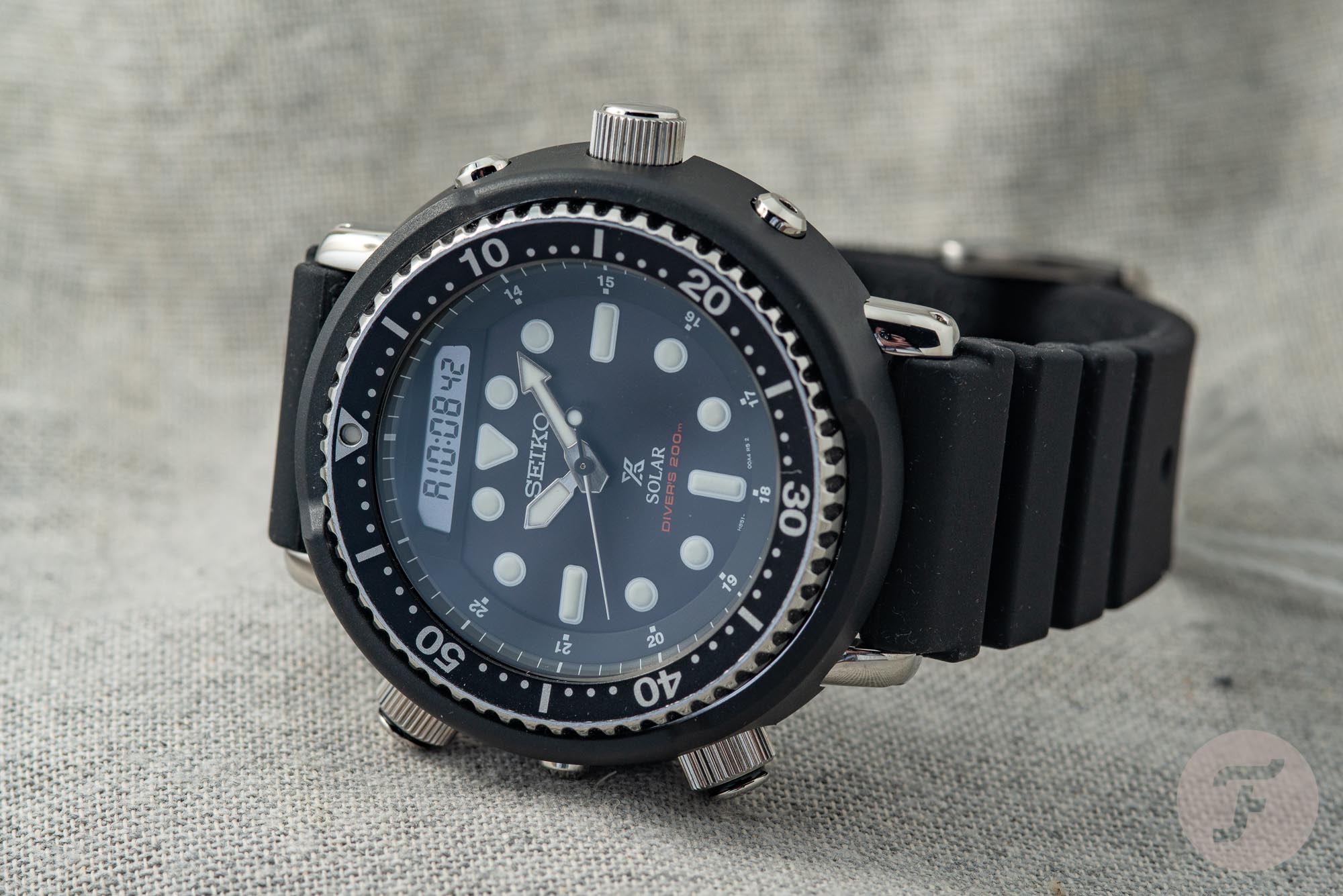 With the introduction of the new Seiko SNJ025 Solar Arnie, the move came is a real surprise. Normally, Seiko like to celebrate anniversaries of older models with new releases and they tend towards milestone years that end in “0” – such as 10, 20, or 30 years and so on. There’s no real anniversary with the Arnie that I know of unless you count that it’s been roughly 30 years since the model was discontinued, but that’s not really a positive thing. Still, we’re damn excited about this because the Arnie configuration is a classic and, like the “Digi Tuna” that we reviewed last year, it shows once again that Seiko is embracing its digital past.
