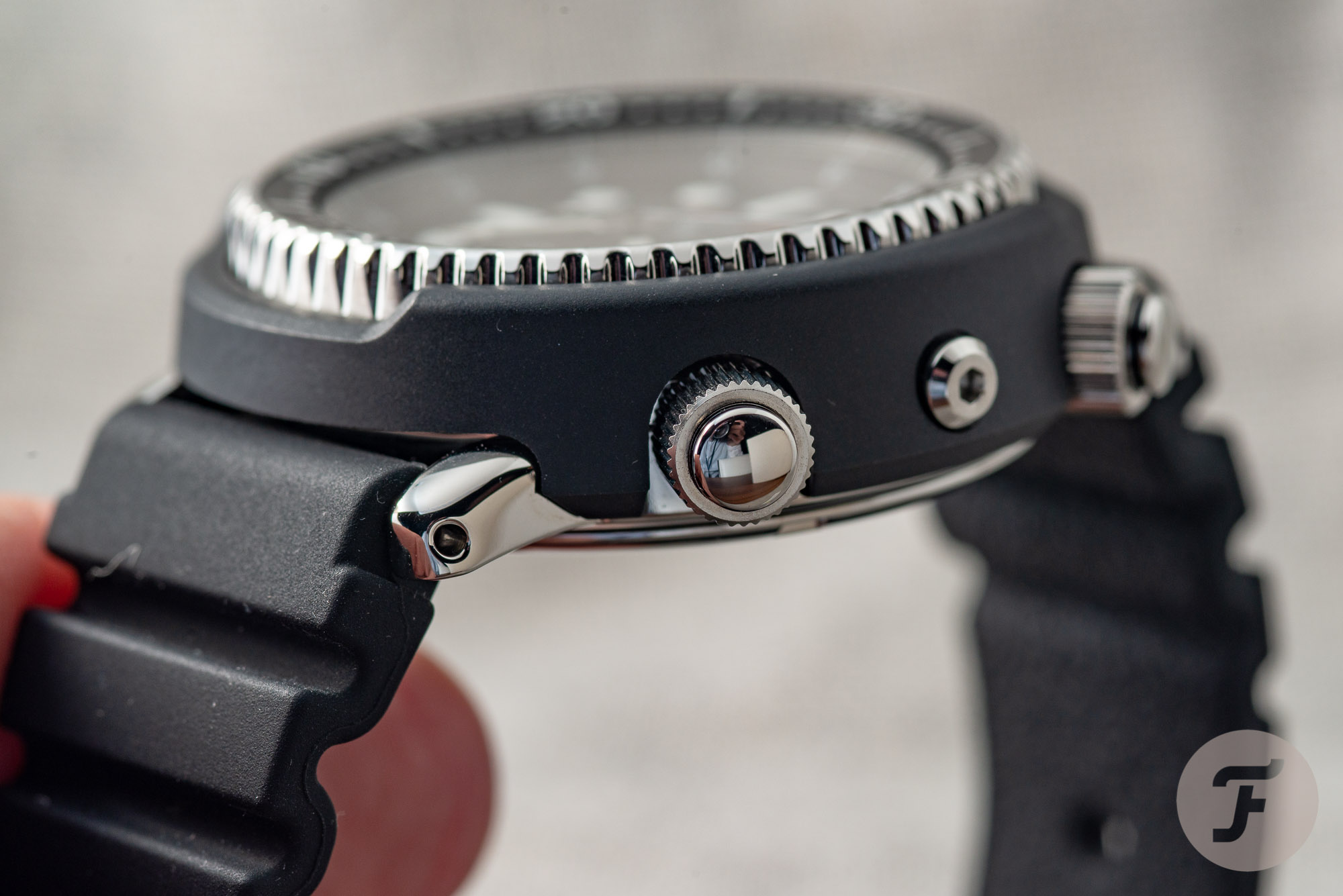 With a plastic shroud, steel case, and Hardlex crystal, the 200M Solar Arnie is fairly light and feels perfect on the wrist. Consistent with all newer divers over the past couple years, the new Solar Arnie sports a silicone strap and, as you likely know, we’re huge fans of these. They’re soft, require no break-in, and the only negative is that they’re dust magnets.
