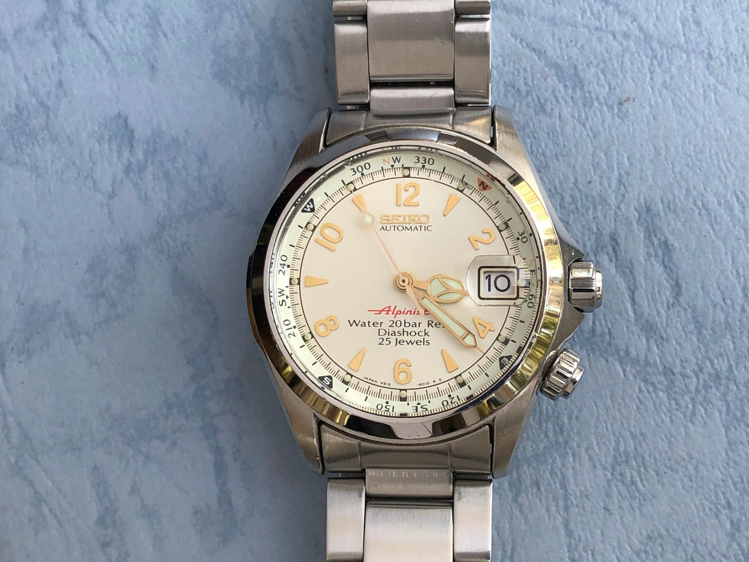 Out of the three, the absolute winner for me is the SCVF007. Its cream-colored dial with the gold hands and indices look very classy on both the bracelet and a leather strap. Inside the 38mm case, Seiko used the Caliber 4S15. The automatic movement operates at 28,800vph, featured 25 jewels, can be hand-wound and hacks. It’s a perfect everyday beater that looks great on the wrist. These watches have always been popular with collectors but became even more popular after the Alpinist models became available worldwide. Finding one is tough, and expect to pay between €1K and €2K for one.