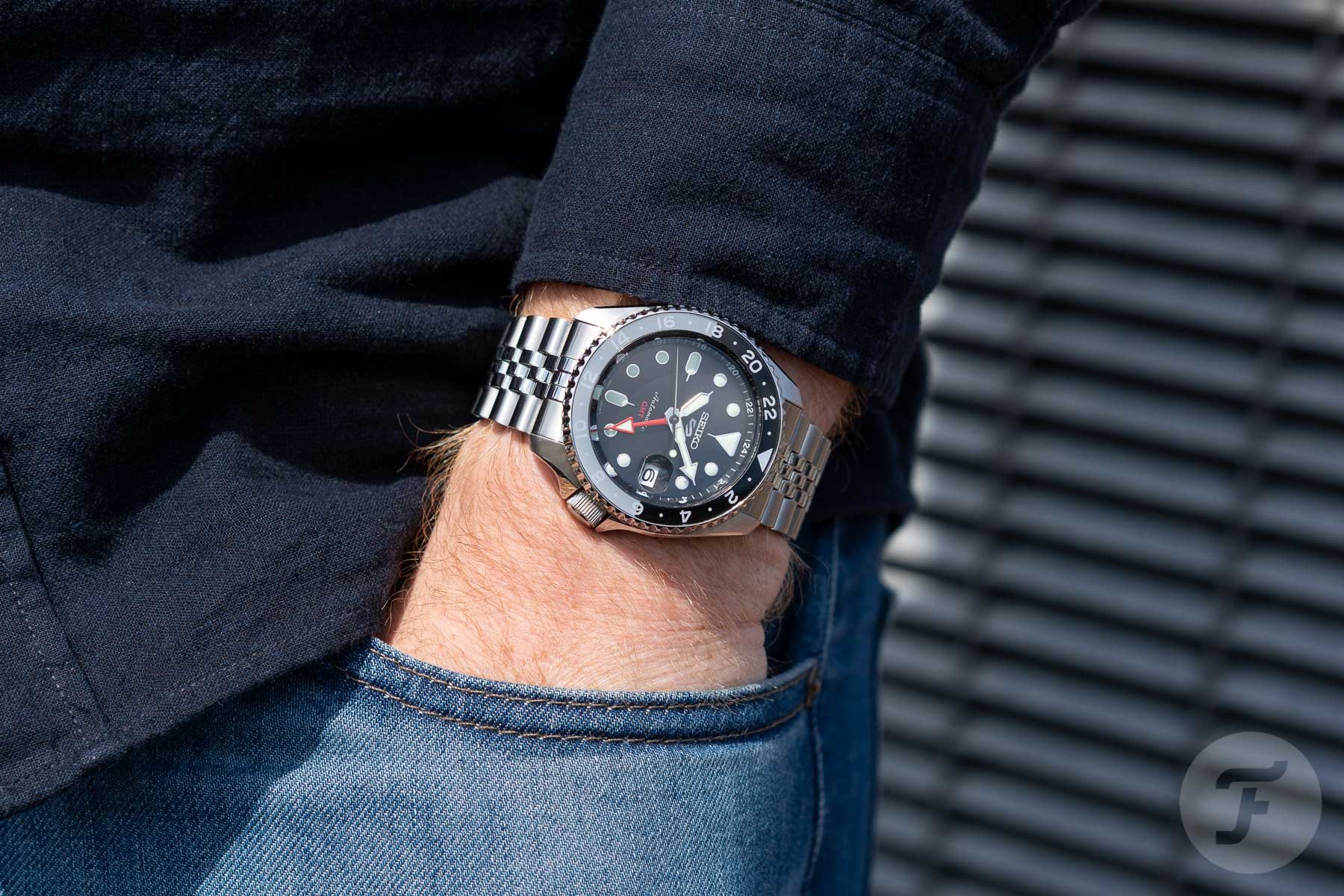 To me, these watches are a little bit like the return of John Frusciante to the Red Hot Chili Peppers. It’s something I always hoped would happen but never expected I’d live to see. But much like Frusciante’s return, the Seiko 5 GMT Series is just as good as expected, perhaps even better. But before I tell you about what you can expect from these watches, let me start with what I don’t like. Now, I don’t mean to be the water-resistance police. Don’t get me wrong, 100m of water resistance is not half bad. Still, I would truly love to see this movement in a 200m dive watch from Seiko. Will it happen at some point? Probably! But, unfortunately, with the SKX no longer around, this Seiko 5 GMT series is as close as we’ll get to an SKX GMT.