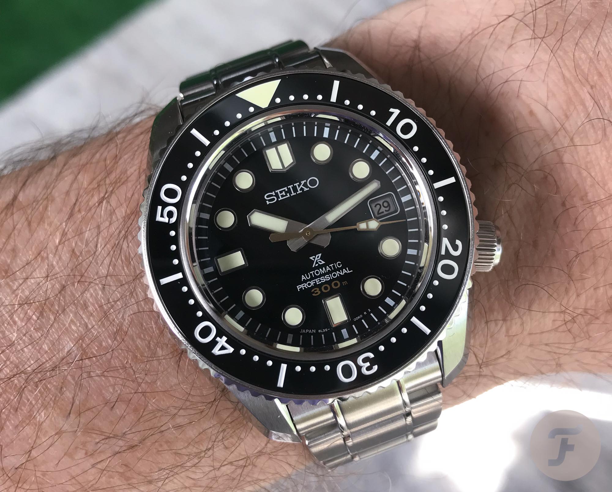 Later in 2015, perhaps early 2016, Seiko announced its successor of the Marinemaster 300 SBDX001, the SBDX017. Michael Stockton wrote a lengthy article on his experience with that improved version of my watch (but didn’t decide to buy one, but Gerard did). It was when the Marinemaster 300 as such was discontinued, and replaced by the green dialed SLA019J1 that wasn’t called a Marinemaster 300, that Michael decided to add one of these watches to his collection as well. He even held it next to a green Rolex Submariner ‘Hulk’, in this article. The SLA019J wasn’t only a green dial version of the Marinemaster 300 SBDX017, it also had some new improvements onboard, like a sapphire crystal, instead of the Hardlex crystal and a ceramic bezel, finally. As I wrote back then in my review of the SLA019J1, I couldn’t imagine a Seiko catalog without a proper successor of the Marinemaster 300 SBDX017. It took a while, but I am sure Seiko wanted to have the spotlight on their green dial SLA019J1, limited to 1968 pieces.