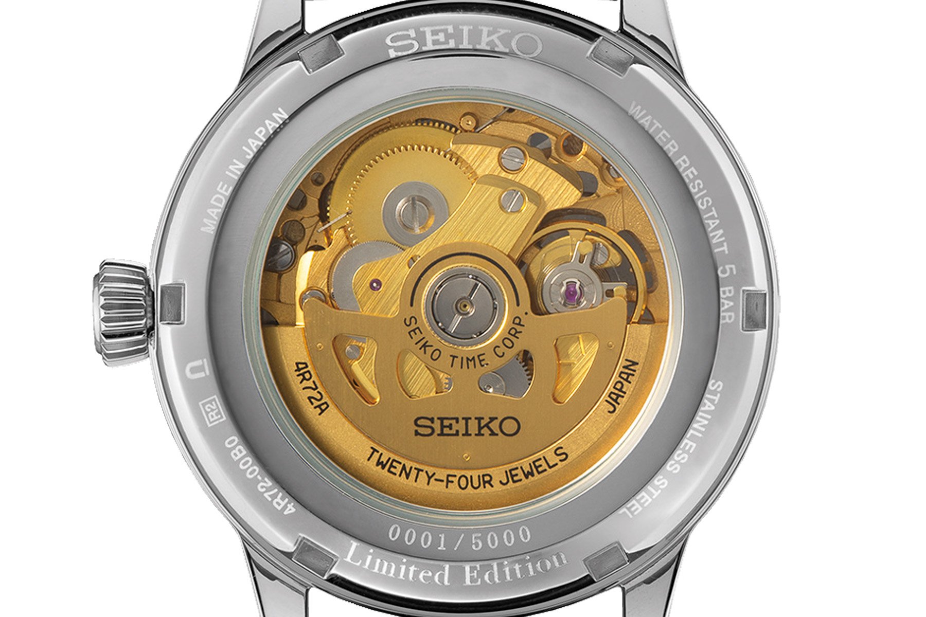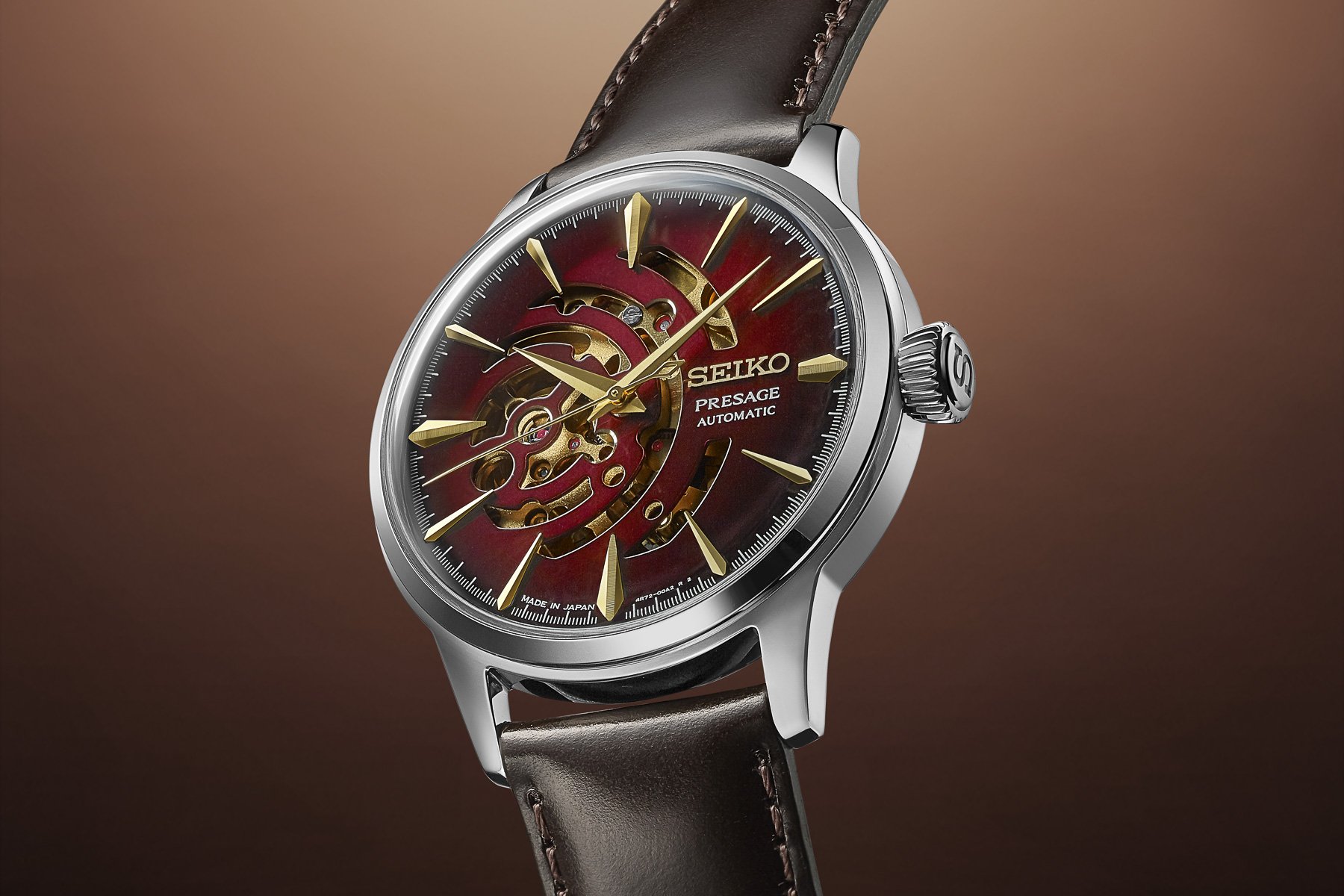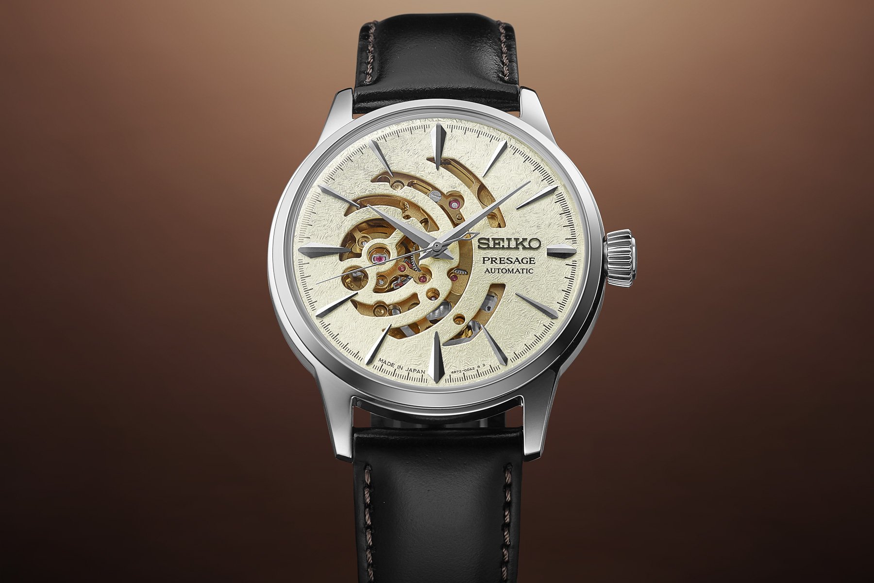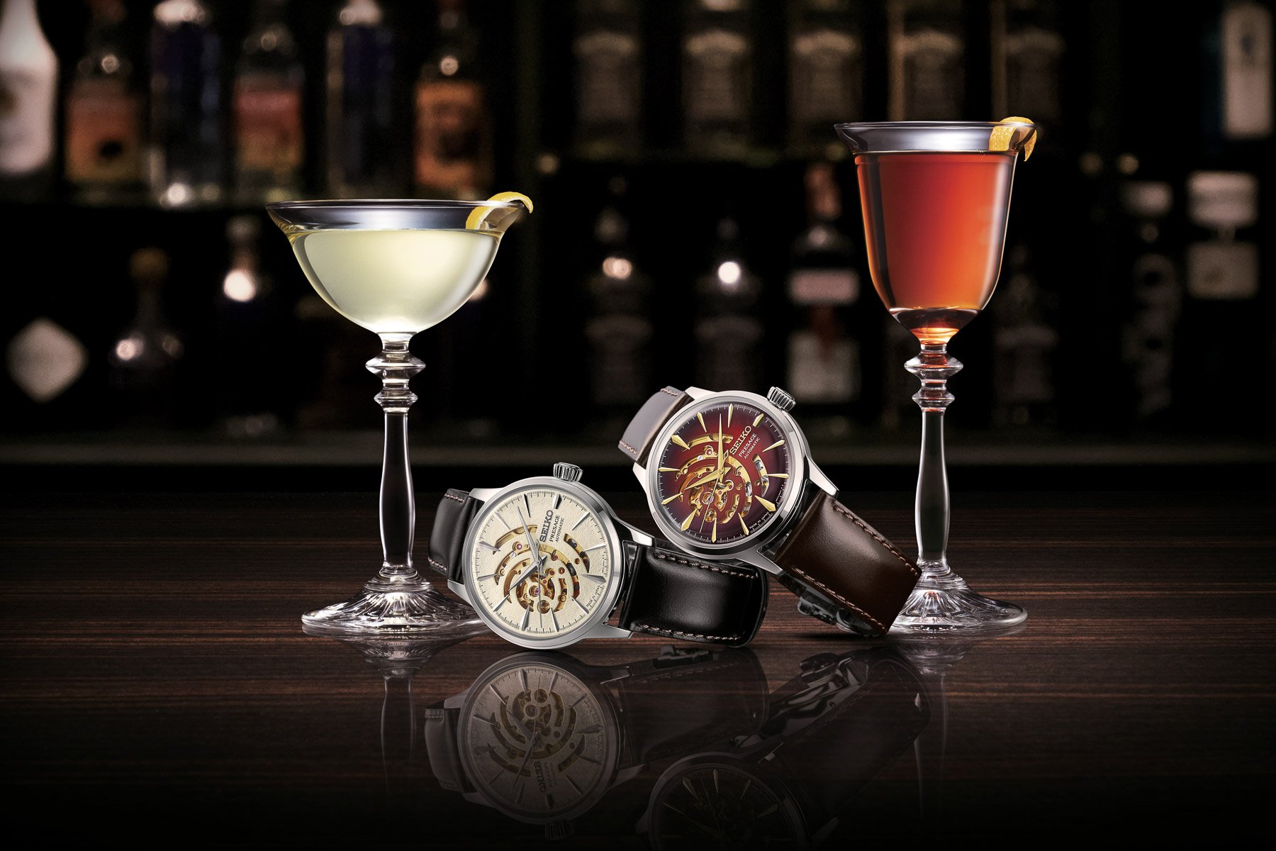 While experimentation and pushing the envelope is a goal of mixology, it does have some parallels in watchmaking. The Presage dials are constantly evolving and at times feature an “open heart” allowing the wearer to see the automatic movement in action. In these two iterations, Seiko has taken this even further, adding several cutouts to showcase the movement and call to mind the ripples in a glass as you imbibe.
