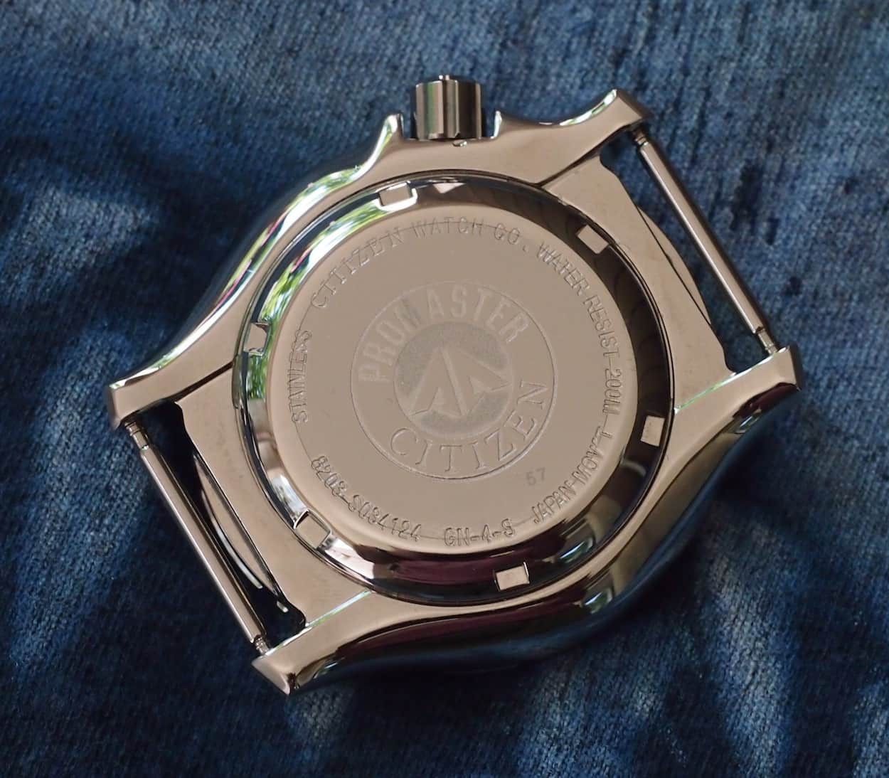 Whereas the Seiko SKX007 is a very simple piece, the Citizen NY0040 contains a lot more detail. First off, the dial is glossy and contains applied indices. The hands are similarly shaped to the Seiko but match the dial perfectly. Color, while also sparse, also comes in the form of red with the mention of water resistance on the lower half and Citizen’s trademark Promaster arrow on the upper half. It’s a high quality dial that even adds the nicety such as a day/date bezel surround. The bezel on the NY0040 is quite a bit different than the SKX007 in that it is 60-click instead of the Seiko’s 120 and it is also rounded at top versus angling inwards in the case of the Seiko. It’s knurled between the 10-minute marks and, as mentioned, follows the diameter of the case. Regarding the case, it is polished on the sides and matte on the top. The unsigned crown contains thick ridges and screws down but still protrudes far beyond the crown guards. The case back contains the Citizen Promaster arrow.