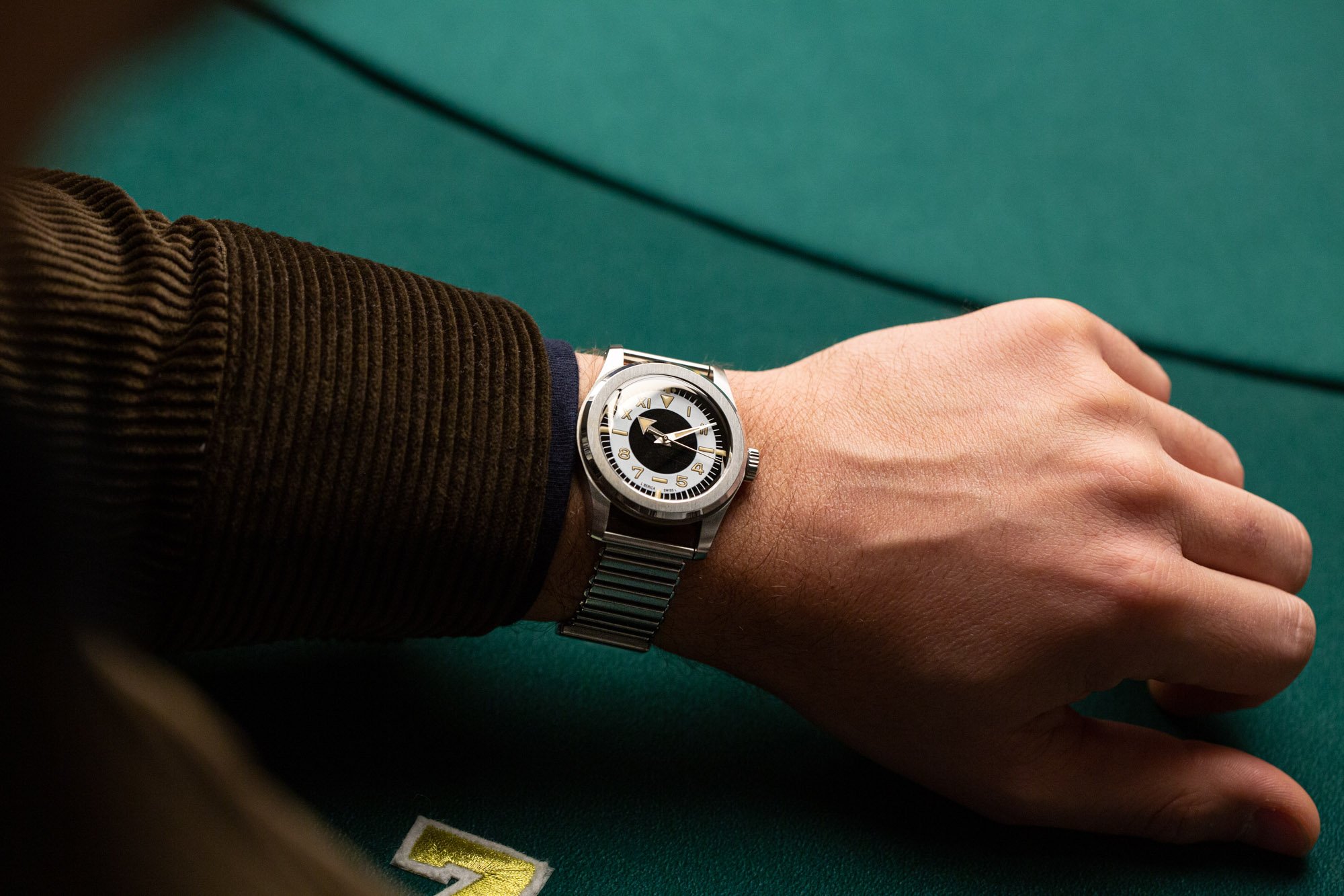 Don’t get me wrong, I actually really like the overall design. But those faux-patina numerals with their black outline on a white background are the one thing that is stopping me (for now) from getting one of the 100 pieces available for pre-order. Just imagine if this watch had been an actual vintage piece. In that case, those numerals would’ve been white to start with. What would that have looked like, do you think? Wouldn’t it have been more consistent to have black numerals on the white background?