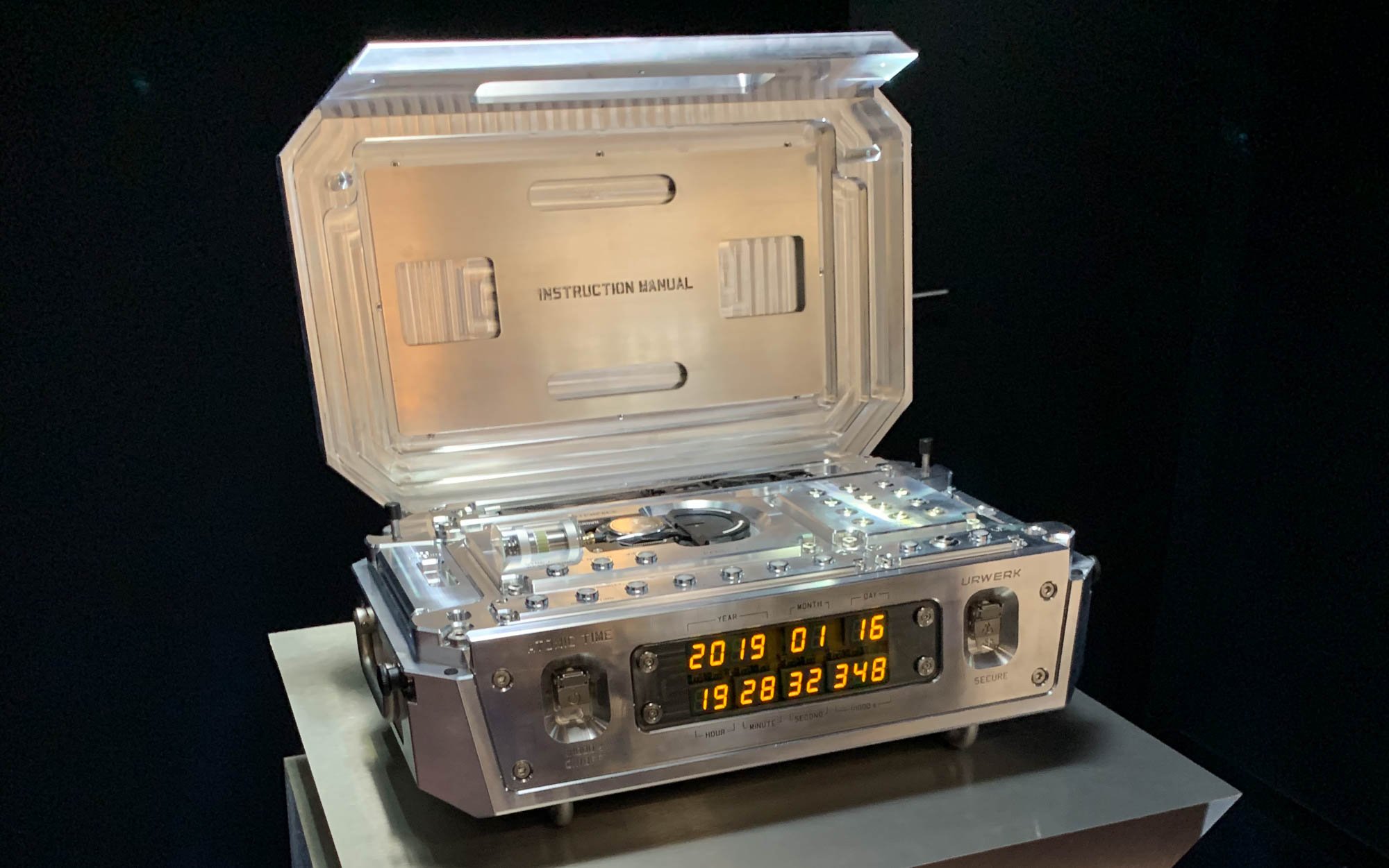 While everything in the Carré is a feast for the eyes and blows your mind, I can easily single out the beast of the show by independent legend URWERK: the Swiss watch brand’s 55-pound portable desk clock the AMC (Atomic Master Clock).