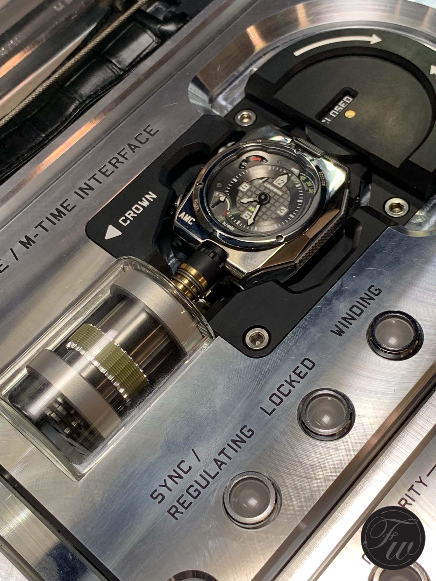 While everything in the Carré is a feast for the eyes and blows your mind, I can easily single out the beast of the show by independent legend URWERK: the Swiss watch brand’s 55-pound portable desk clock the AMC (Atomic Master Clock).