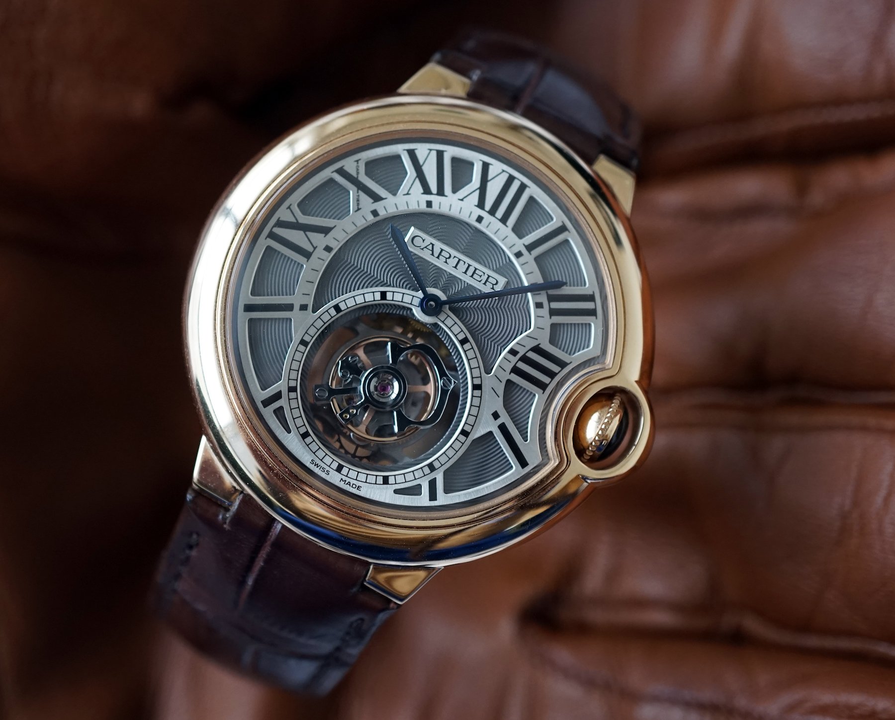 In 2008, Cartier discontinued the CPCP series to make way for the ambitious Fine Watchmaking Collection. This was like a CPCP collection aimed at the male clientele. This time, however, several watches appeared each year, featuring a complicated caliber developed and manufactured by the Cartier team of watchmakers. The Flying Tourbillon was the very first caliber that debuted at the fair in Geneva in 2008. The brand featured it in the Ballon Bleu, Santos 100, Calibre, and Tank Americain cases.