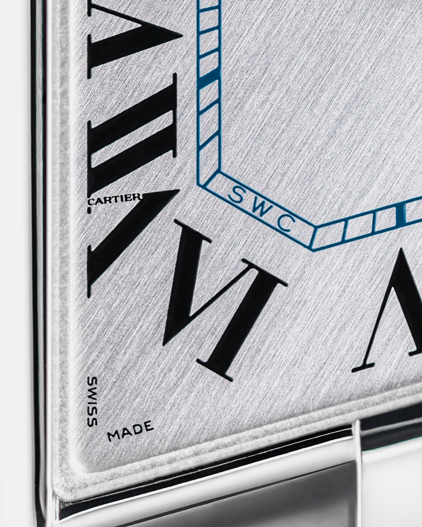 All six models will feature vintage-inspired straight-grained silver dials. The dials will all follow the classic Cartier Roman layout and will be unified by the use of blued “pomme” or Breguet-style hands. This style of hands gives the watches a very distinctive and tasteful look. The railroad minute track is also blue. That creates a nice visual link between the hands and the dial itself. At the 6 o’clock position, the SWC signature replaces the corresponding hash marks — a subtle signature beautifully integrated into a core element of Cartier’s design. The final detail is one that had me having a second look at my own Cartier Tank. The Roman numeral six is inverted. So instead of being upside down as it usually is, it is flipped right-side-up — a nod to SWC’s 6 year anniversary.