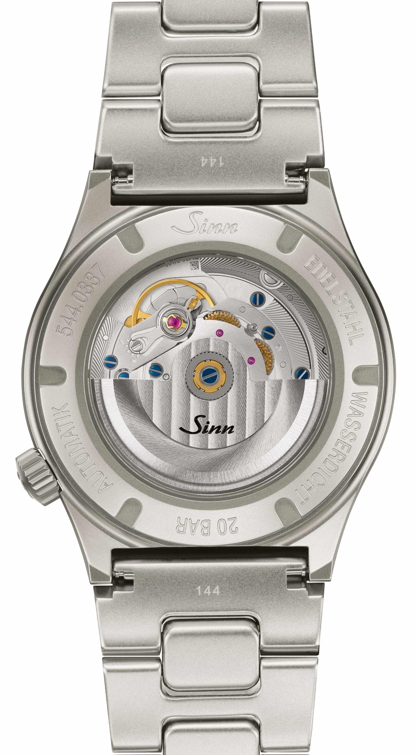 The Sinn 544 and 544 RS lean heavily into reduction, bringing the Sinn aesthetic into proportions more suited to daily wear. Both models share the same 38.5mm bead-blasted stainless steel case, offering a 10mm thickness and 200m water resistance rating. The crown sits at 4 o’clock, a practical choice that improves comfort. Sapphire crystals on the front and back reveal the automatic Sellita SW200-2 movement with a minimum 60-hour power reserve.