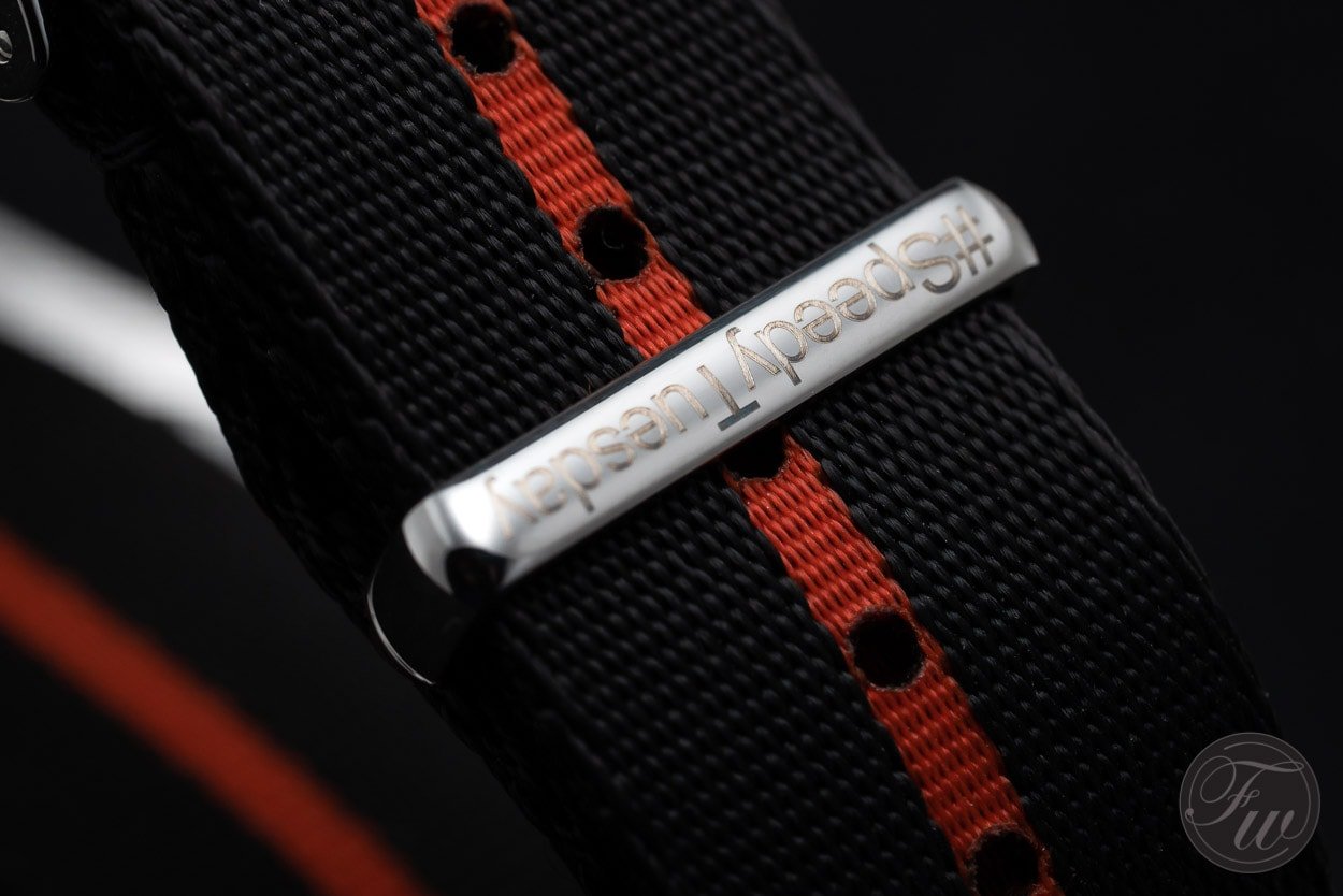 The caseback is based on the original Moonwatch one, with the famous ‘Qualified by NASA….’ Engraving but also carries the Speedy Tuesday hashtag and the unique number of your watch.