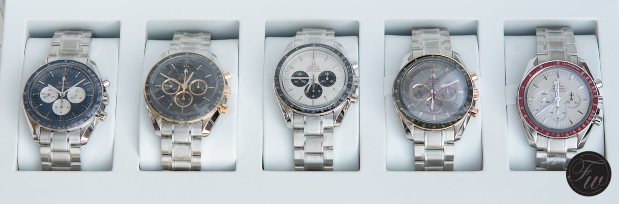 Between the introduction of the Speedmaster Speedy Tuesday “Ultraman” and the Speedmaster Hodinkee Limited Edition, Omega decided it was the perfect moment to introduce the Speedmaster Tokyo 2020 Limited Edition series. Only meant for the Japan market, but also outside this beautiful country, it received some press (also by us, of course). Omega will be the official timekeeper for the Olympic Games in 2020, and it has become a tradition that they present a number of watches dedicated to the Games. This time, but I assume we will see some more in 2020, five different Speedmaster models that can be bought as separate watches (and limited to 2020 pieces each) and one set with all five watches. These sets are limited to 55 pieces only, and last week we’ve met with a Speedmaster collector who managed to buy a set in Japan.