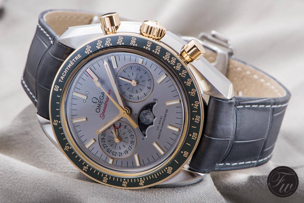 It is actually based on the 44.25mm Speedmaster Moonphase Co-Axial Master Chronometer, that has all the recent technology on board from Omega, hence the Master Chronometer certification. We reported about this watch in this article, where you can admire most of the Moonphase Co-Axial Master Chronometer variations. I find it an interesting choice for Omega to use this non-Moonwatch model as a Speedmaster Tokyo 2020 Limited Edition, that is based on the 42mm Moonwatch. As you can see, the grey alligator strap on the 44.25mm Co-Axial Master Chronometer watch is similar to the strap that is being delivered with the 55 sets of the Speedmaster Tokyo 2020 watches. Besides the size and complication, the movement is of course also entirely different. The 44.25mm version uses Omega’s in-house caliber 9905 movement instead of the hand-wound caliber 1861 from Lémania.