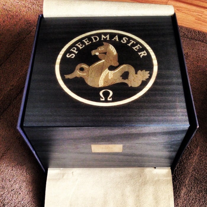 Normally, OMEGA watches come in red leather boxes. Some times in a black leather box and once in a while they used a wooden box. All for different reasons, but the ‘normal’ or ‘standard’ Speedmaster Professional comes in a red leather box. Some limiteds in other boxes. The box of this OMEGA Speedmaster 1957 50th Anniversary model is worth a special mention, as it is one of the coolest watch boxes we’ve ever seen (of the big brands).
