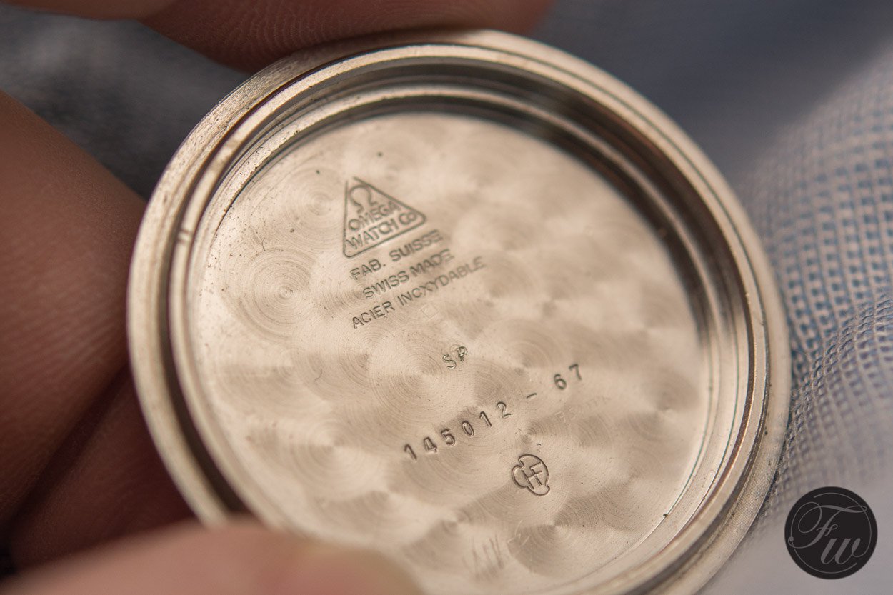 Normally, the Speedmaster Professional 145.012 should come in an a-symmetrical case, have a Dot Over 90 bezel (DON), tritium ‘T Swiss Made T’ dial (with long indices) and tritium hands, single-step caseback (with Seahorse engraved). What I’ve noticed, and my own Speedmaster Professional 145.012-67 is an example of that as well, is that the hour markers and minute markers seem to be very white on some models where other models have a bit of yellow-ish patina. It is a common difference in dials and hands of that era when different suppliers were used for dials (and tritium).