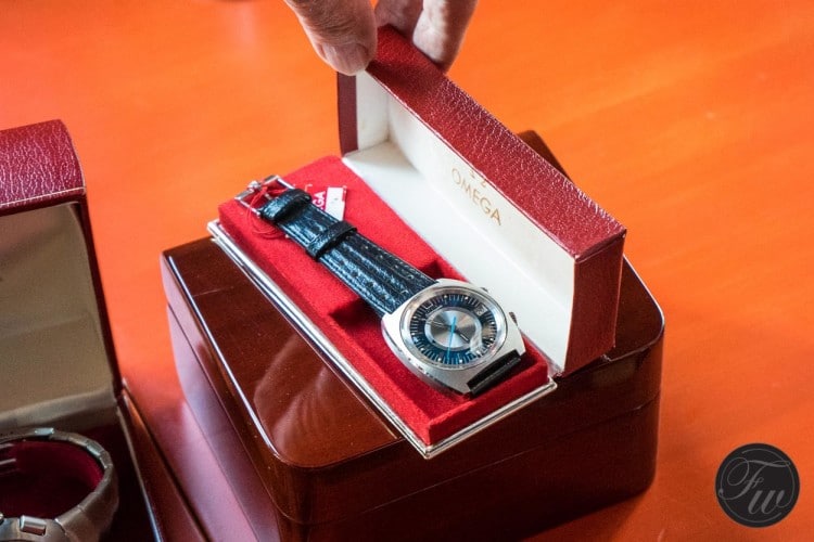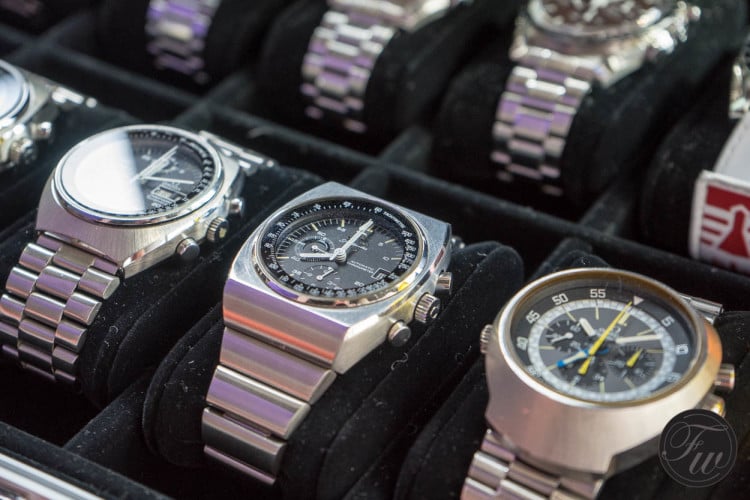 Perhaps the rarest watch was the Speedmaster Professional with blue dial, factory original. We did an article on the one that resides in the Omega Museum in Biel here, but this one was just as nice.