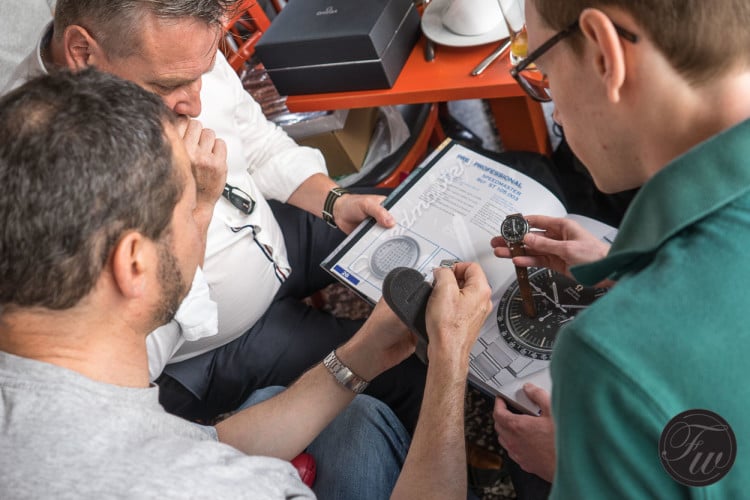 The technical knowledge on the Speedmasters from the guests was impressive. The eye for detail on the older models and some of the limited editions was interesting to witness. Loupes were brought in to check some of the details on dials and movements. Authenticity and originality are very important when it comes to collecting Speedmaster watches, even though it is not always certain how some reference numbers originally left the factory in Biel. Luckily, the Omega museum and archives team have a lot of information about the watches that were sold in the past and might be able to help you with questions.