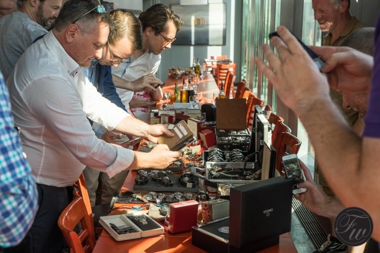 In a special and separated room in the restaurant, guests of the Speedmaster GTG enjoyed drinks and food. Some brought a suitcase or boxes filled with Speedmasters, others just had one and a few had no Speedmaster yet but they’d asked if they could join as they were planning to buy one in the near future and could use some inspiration on what model to buy. From what I’ve heard from them at the end of the evening, they are certainly aiming to buy one soon.