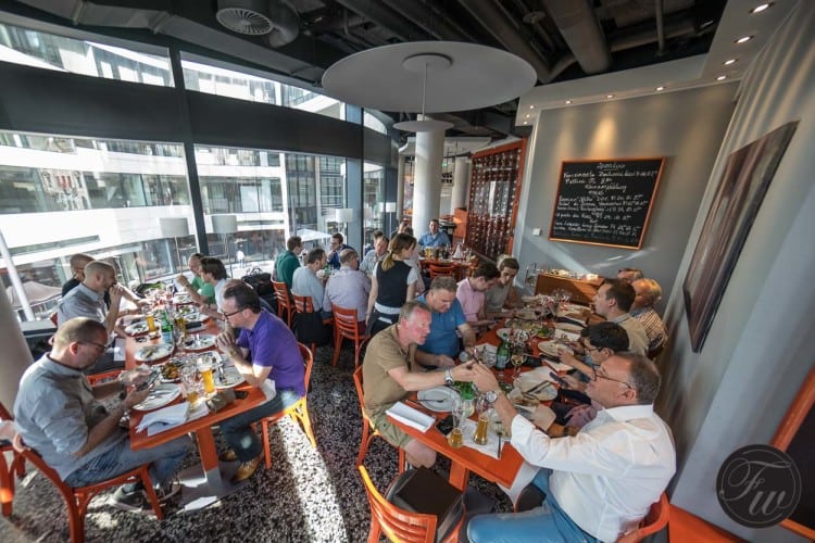 We planned to have drinks and later on a dinner. Everyone was there at 16:30 and most of them stayed to the very end. Some had traveled for hours to be able to join the Düsseldorf edition of our Speedmaster GTG events, so I was surprised everyone was there on time. The location was in the city centre of Düsseldorf, near the famous Kö (Kö-Bogen, an interesting architectural building, designed by Liebeskind). A very busy and crowded shopping area with lots of watch dealers and retailers. Unfortunately not an Omega boutique (or Tourbillon Boutique) in that area, but it would fit there perfectly.