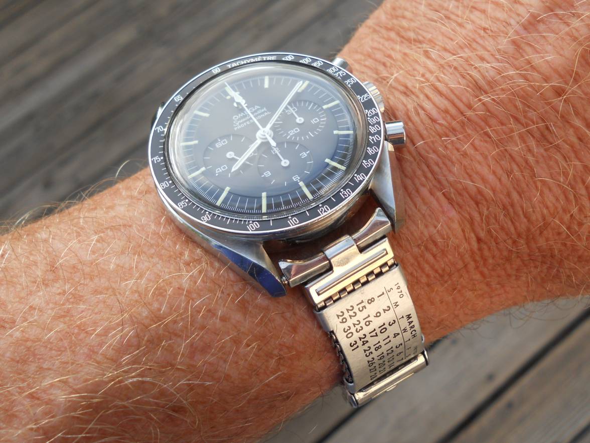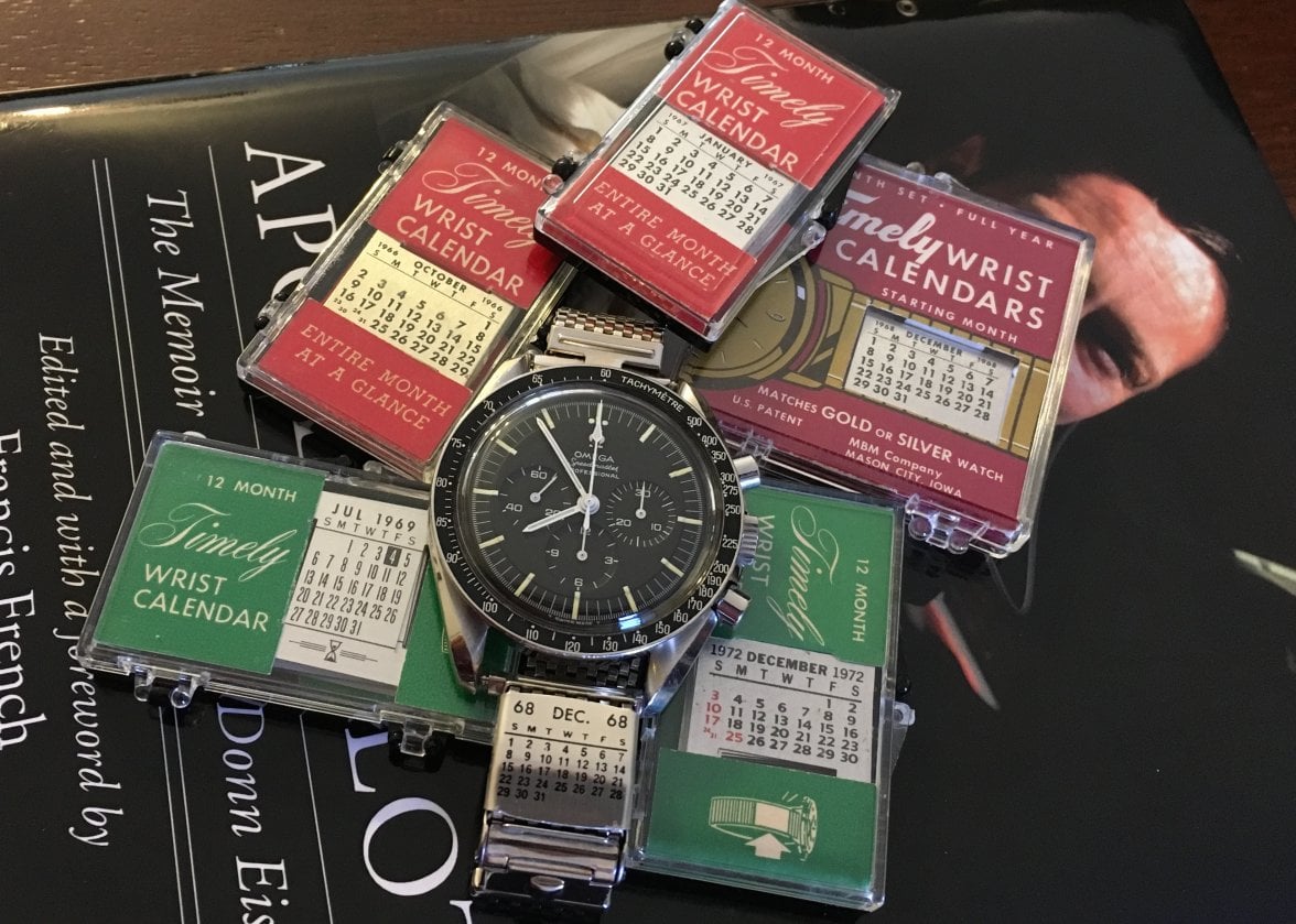 The astronaut answered that he suddenly recalled the brand name of the H-shaped calendars they used on their Speedmaster watches. They were called Timely Wrist Calendar. TLIGuy mentioned that it was quite interesting to get an e-mail from an astronaut who recalled something futile like this, as he has been flying jets, orbiting and walking on the surface of the Moon. And now he remembers the little thing that was attached to the bracelet of his chronograph.