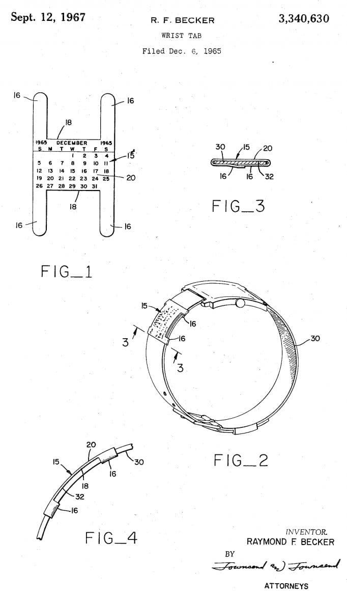 The wrist calendar was designed in 1965 and even patented back then. Below the patent document.