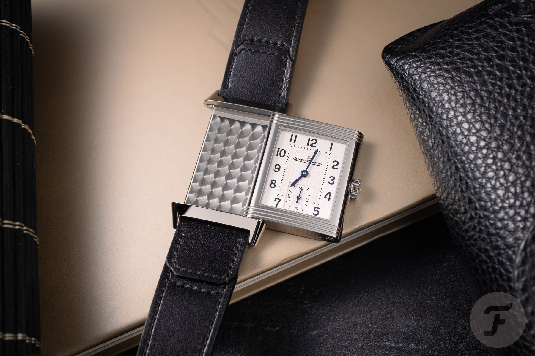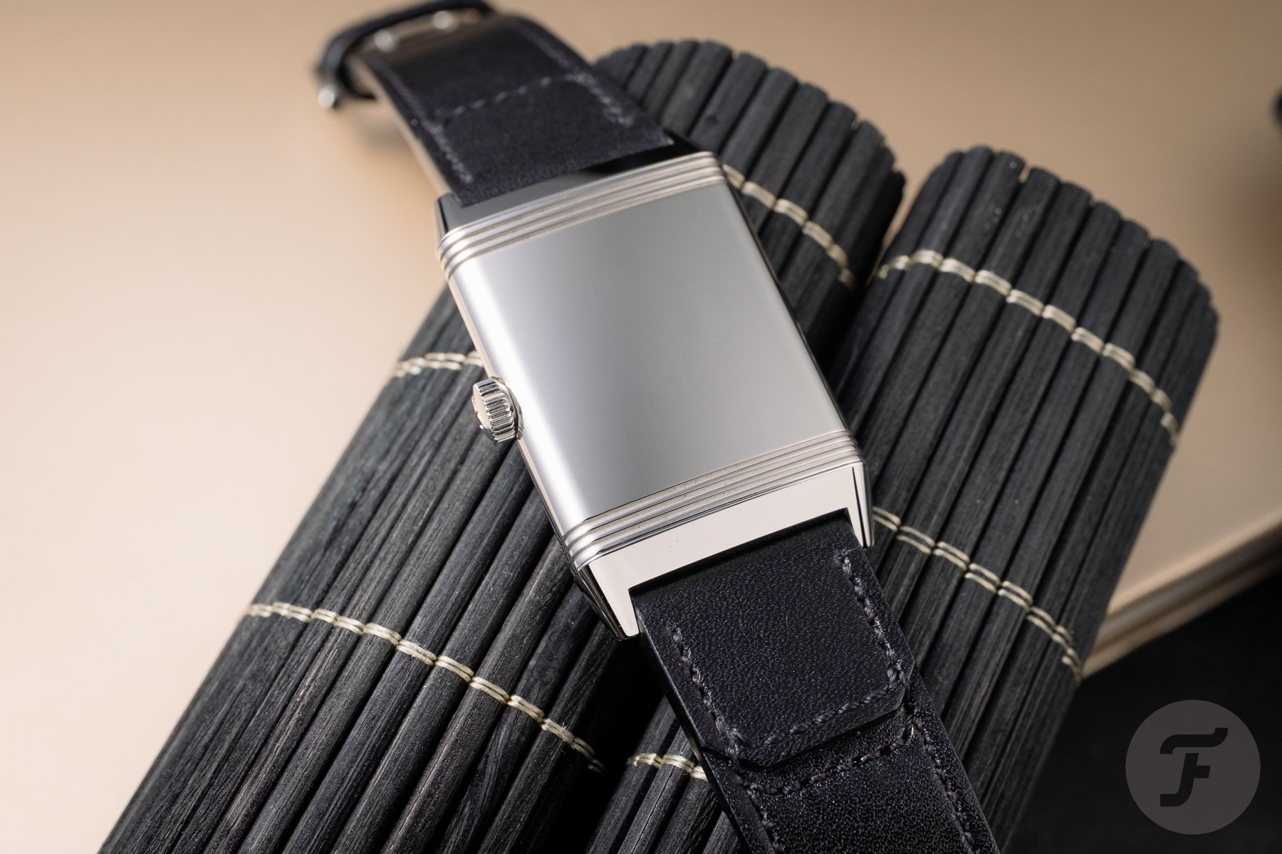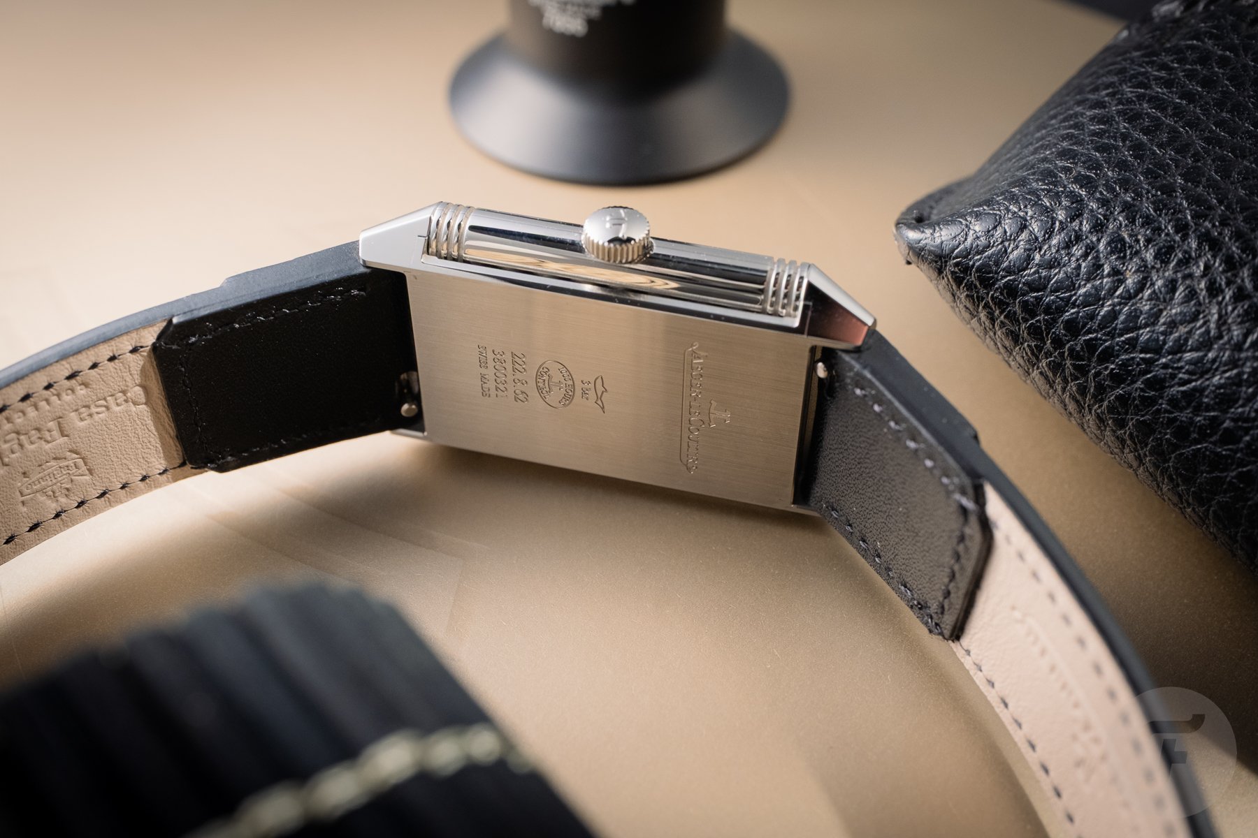 One of the nice things about a Reverso is that it’s such a tactile watch. Yes, I mean you can play with the case endlessly, and it never gets old. JLC updated the shape and construction a while back. The 50-part case feels solid, and the way it flips feels fluid and robust at the same time. Just make sure to flip and slide, not flip and push down, as many people do. You have to respect the mechanism that debuted in 1931 and handle it with care.