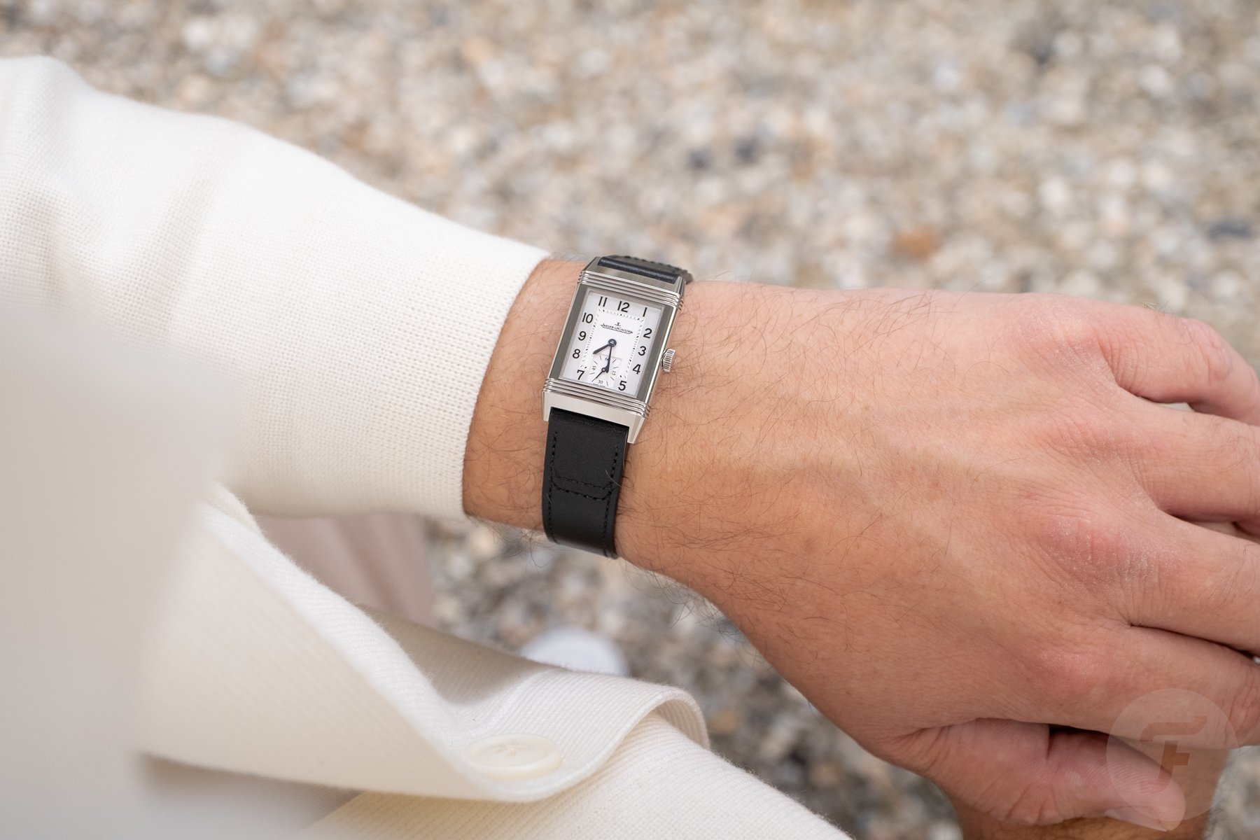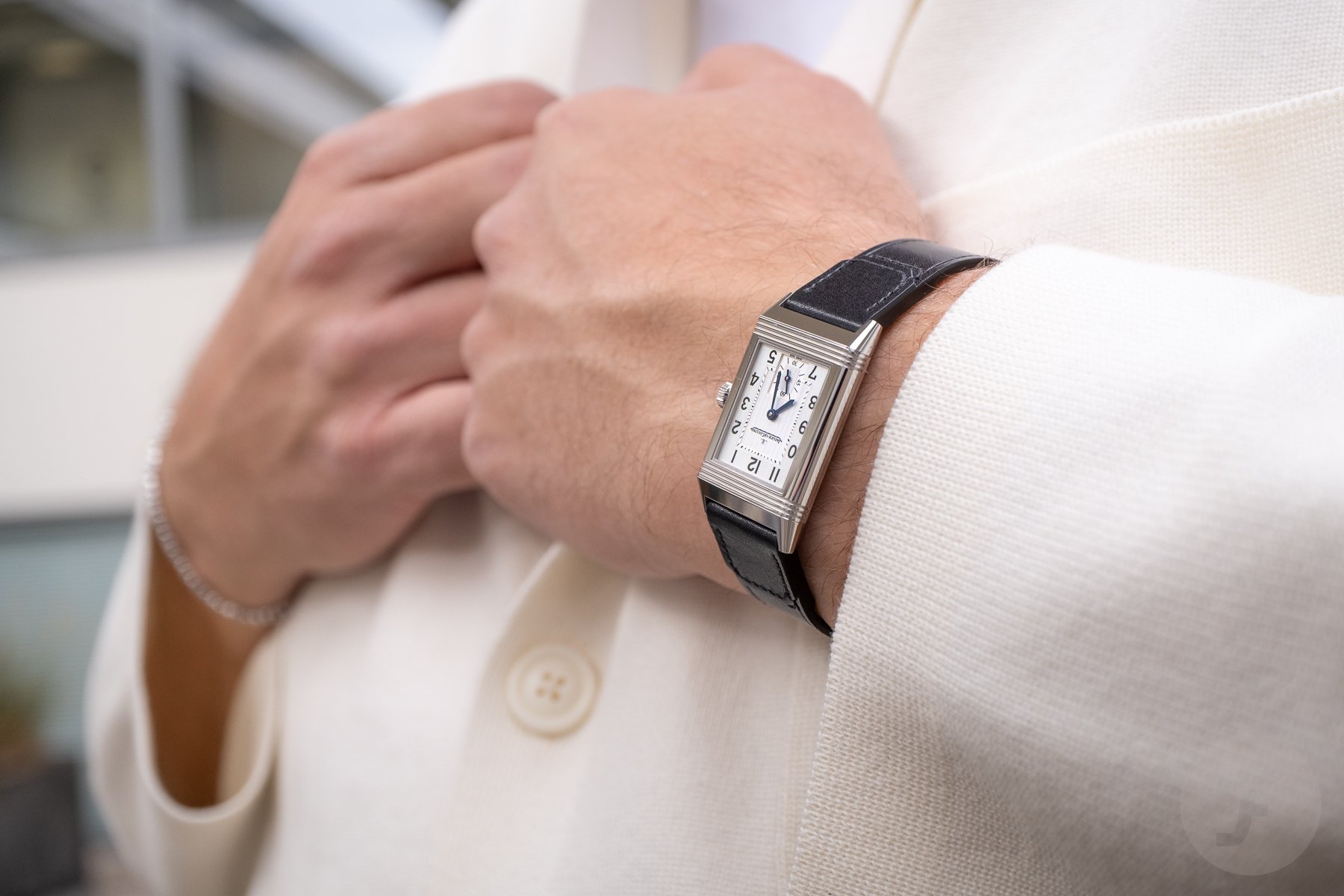 Wearing the medium Reverso Classic Monoface Small Seconds in steel